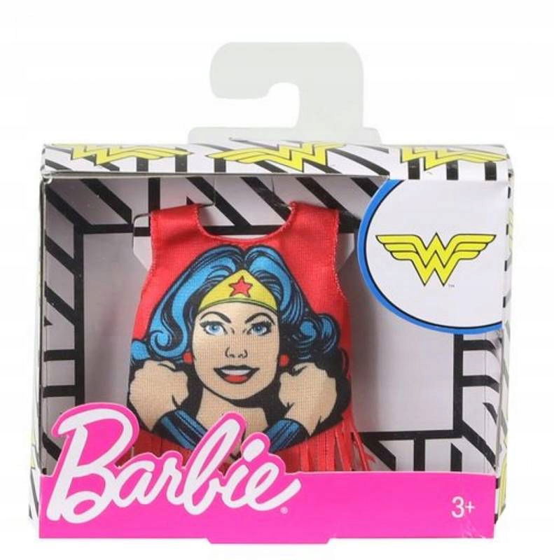 Ubranko dla lalki Barbie z nadrukiem super bohaterki - Wonder Women. Bluzka jest czerwona, została wykończona frędzlami, a znajdujący się na niej nadruk został wykonany w stylu pop art. Lalka Barbie ubrana w tą bluzkę będzie wyglądać modnie i młodzieżowo. Jeśli szukasz nowych ubranek dla lalek, to świetnie trafiłeś. Ten bezrękawnik to jedna z najmodniejszych propozycji.