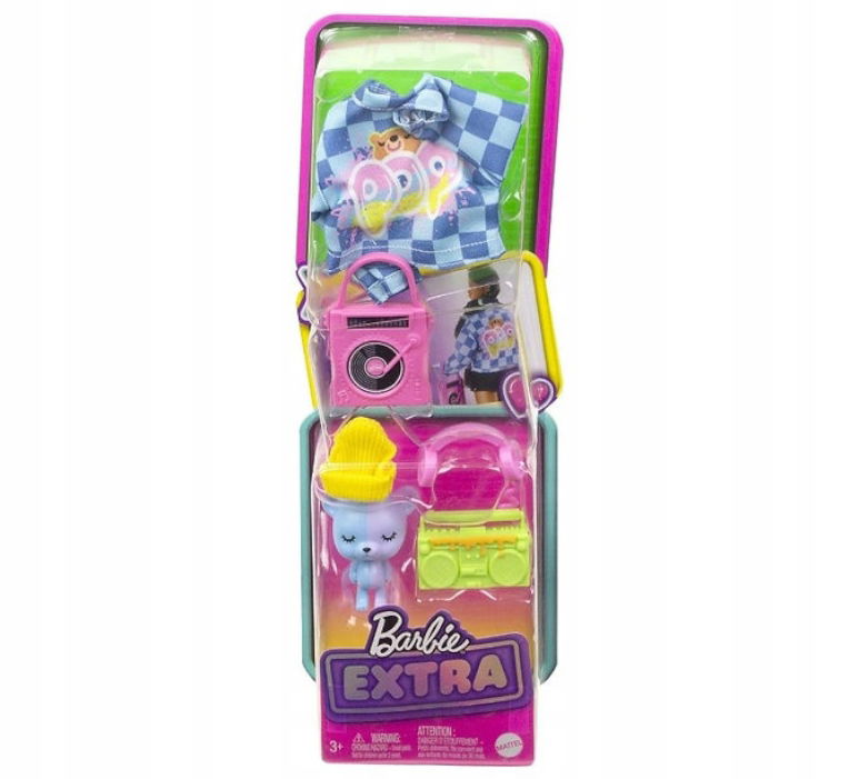 Prezentujemy extra komplet, w którym znajdziecie figurkę przedstawiającą urocze zwierzątko, niebiesko-różowe futerko, biało-niebieską torebkę oraz inne akcesoria tematyczne. Do figurki zwierzaka dołączono własne akcesoria, jak choćby żółta opaska z gwiazdkami. Komplet ten kryje w sobie wspaniałe gadżety dla wszystkich fanów kultowych lalek Barbie, dzięki którym Wasza zabawa będzie urozmaicona i jeszcze bardziej udana!