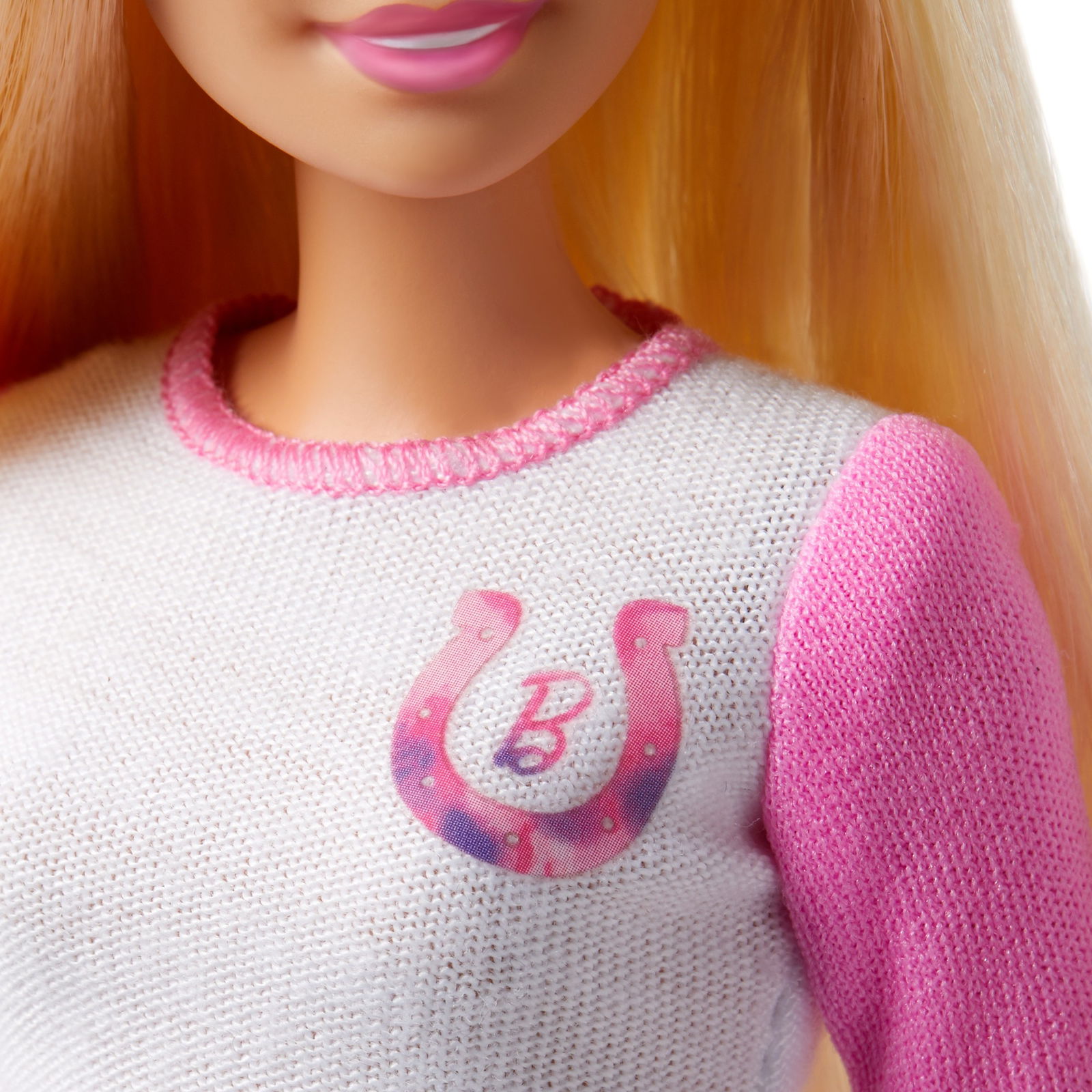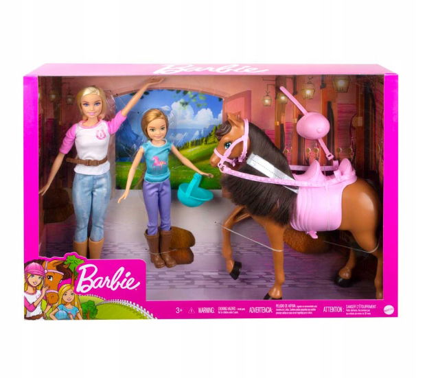 Miłośnicy zwierząt w wieku od 3 do 7 lat mogą odgrywać lekcje jazdy konnej i wszelkiego rodzaju historie o przyjaźni z lalkami Barbie i Stacie. To świetna zabawa wyobrazić sobie wszystkie możliwości, ponieważ z Barbie możesz być kimkolwiek!