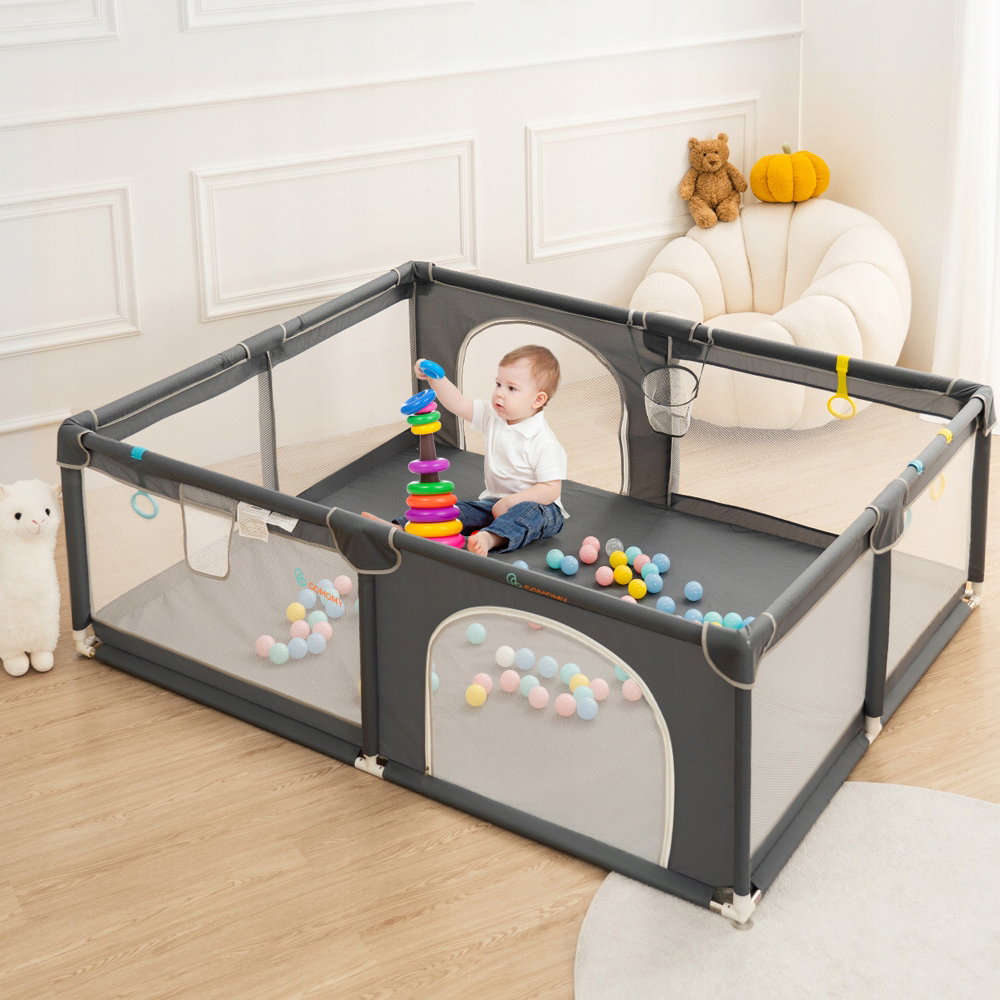Bardzo Duży Kojec dla Dzieci 180x200x66 cm z Piłkami szary COMOMY