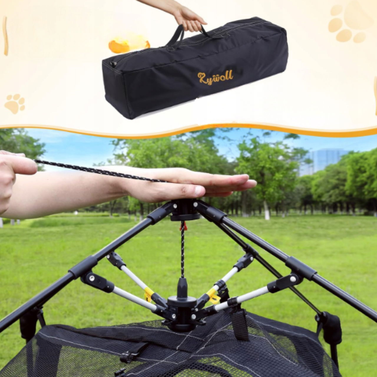 Wykonany z materiałów odpornych na słońce i warunki pogodowe namiot świetnie sprawdzi się w ogrodzie, na patio czy podczas kempingu. Twój pupil zawsze będzie miał bezpieczne schronienie.