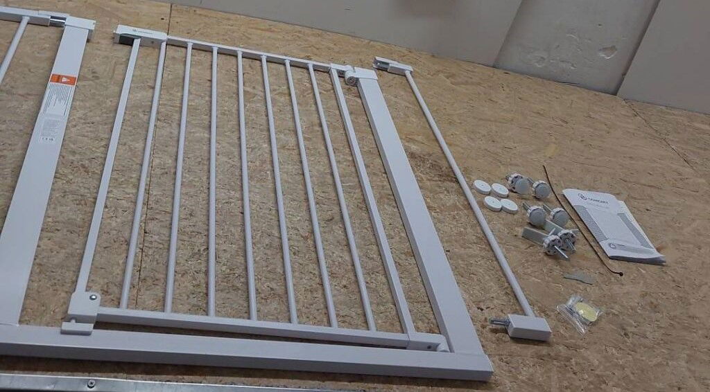 Bramka ochronna COMOMY pasuje do przejść o szerokości od 75 do 103 cm. Jej wysokość to 76 cm.