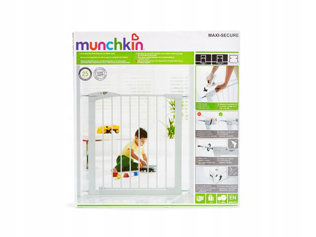 Bramka Munchkin Maxi-Secure łączy w sobie jakość i wartość. Jest wyposażona we wszystkie dostarczone narzędzia do szybkiej i łatwej instalacji w zaledwie 5 minut.
