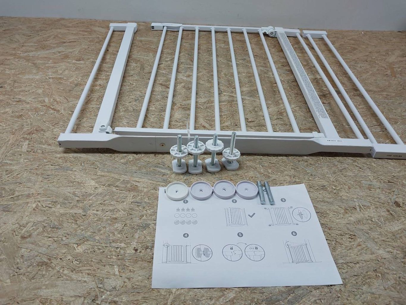 Łatwa instalacja: Kratka bezpieczeństwa z przedłużeniem jest mocowana za pomocą 4 śrub nastawczych i dołączonych akcesoriów między drzwiami lub schodami, dzięki czemu nie powstają żadne otwory