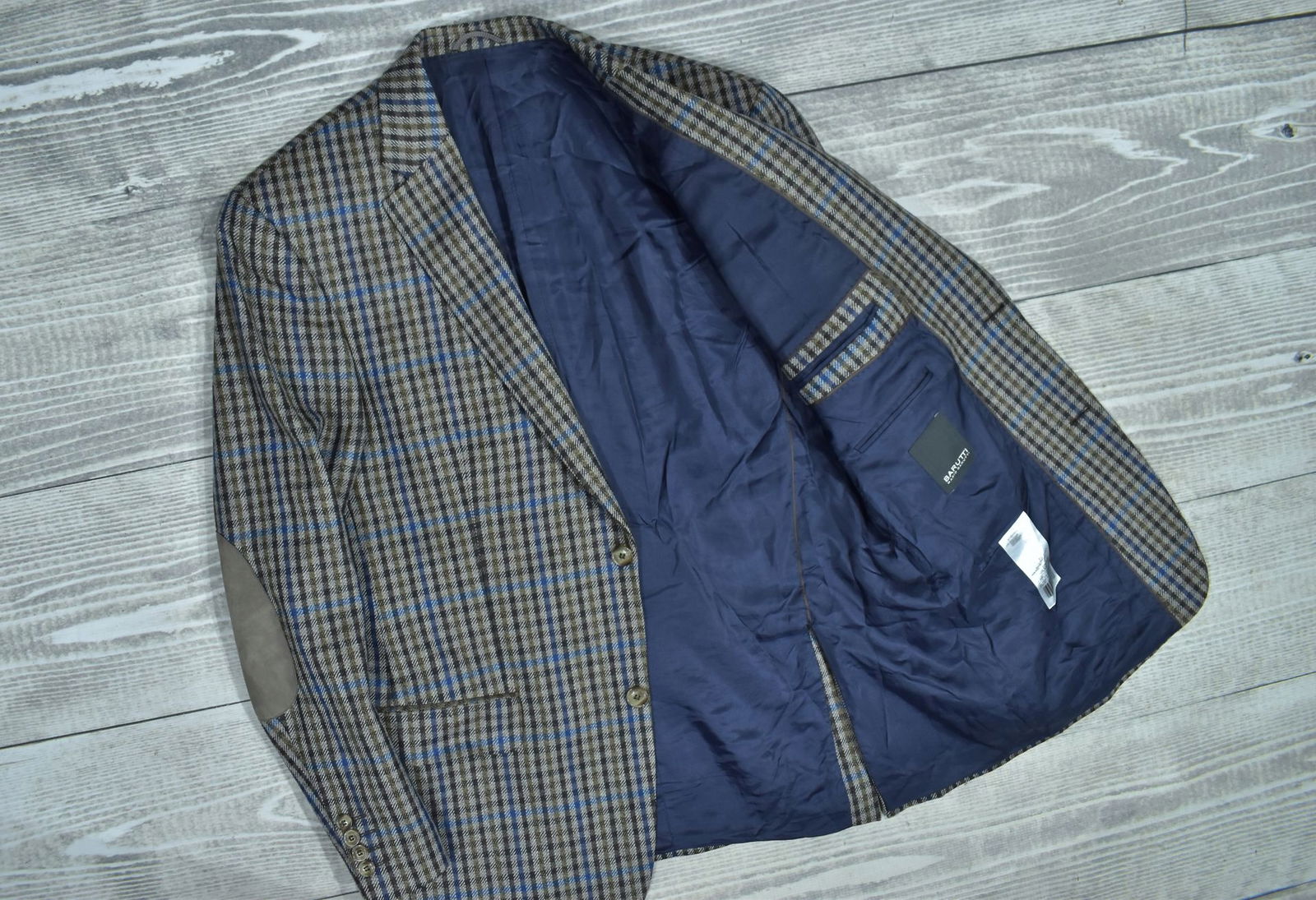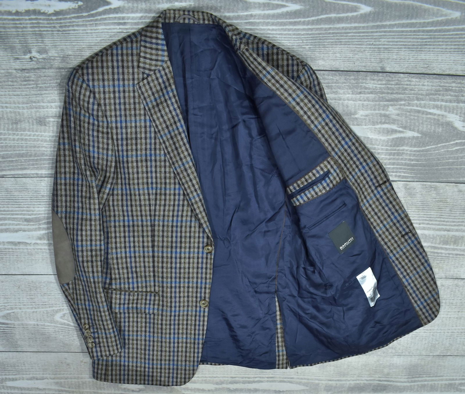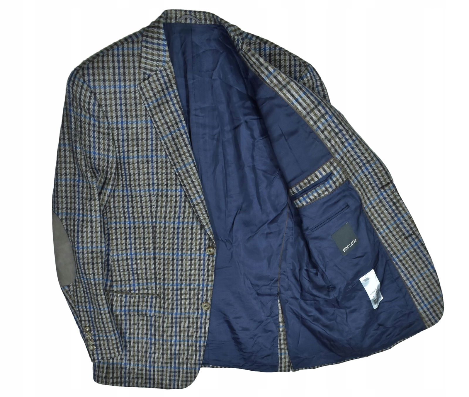 BARUTTI Wełniana Marynarka z Dodatkiem Kaszmiru w Drobną Kratkę 52