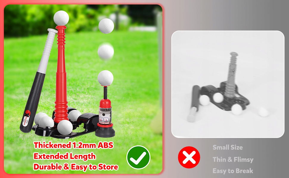 Wysuwany stojak w kształcie kuli T – po zamocowaniu dzieci mogą jeszcze lepiej trenować swoją umiejętność uderzenia. Nasz pogrubiony stojak jest mniej podatny na przypadkowe uderzenia. Regulowana konstrukcja sprawia, że nadaje się dla osób w wieku 3-12 lat.