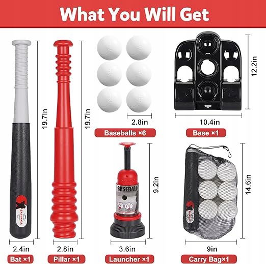 BASEBALL SPORT SET ZESTAW DO NAUKI GRY DLA DZIECI WYRZUTNIA PIŁEK 3-12 LAT