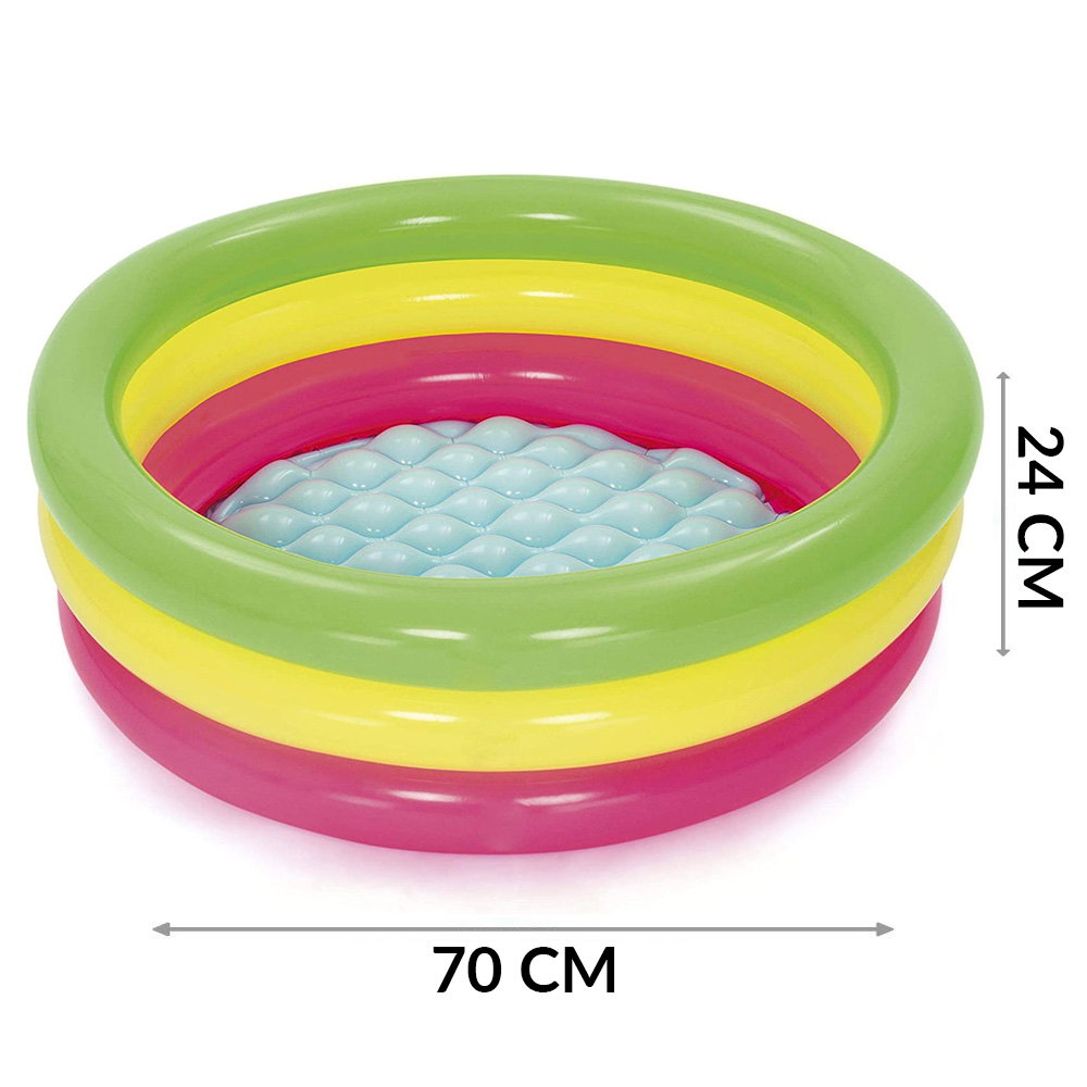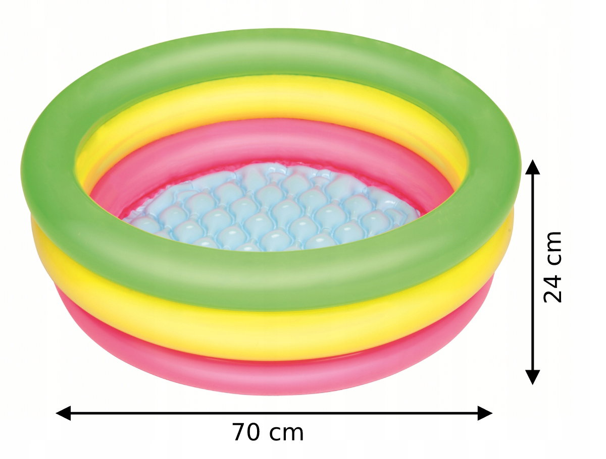 Basenik składa się z 3 kolorowych osobno pompowanych pierścieni. Każdy z nich posiada zawór bezpieczeństwa uniemożliwiający wydostanie się powietrza na zewnątrz.