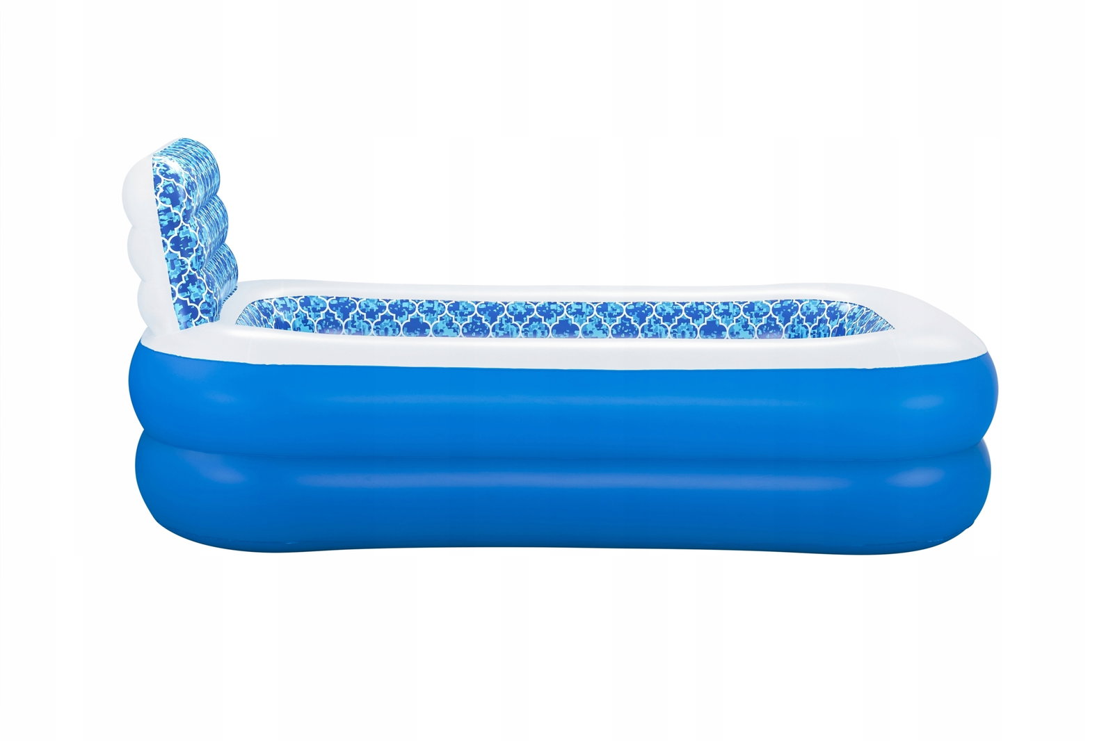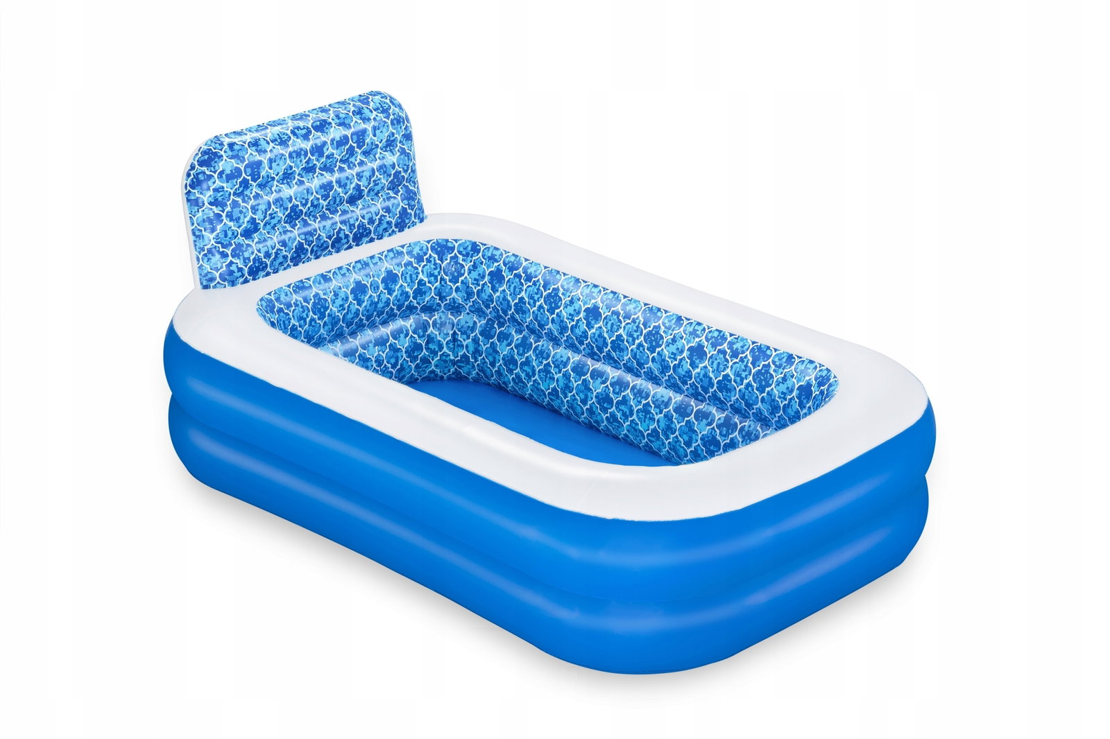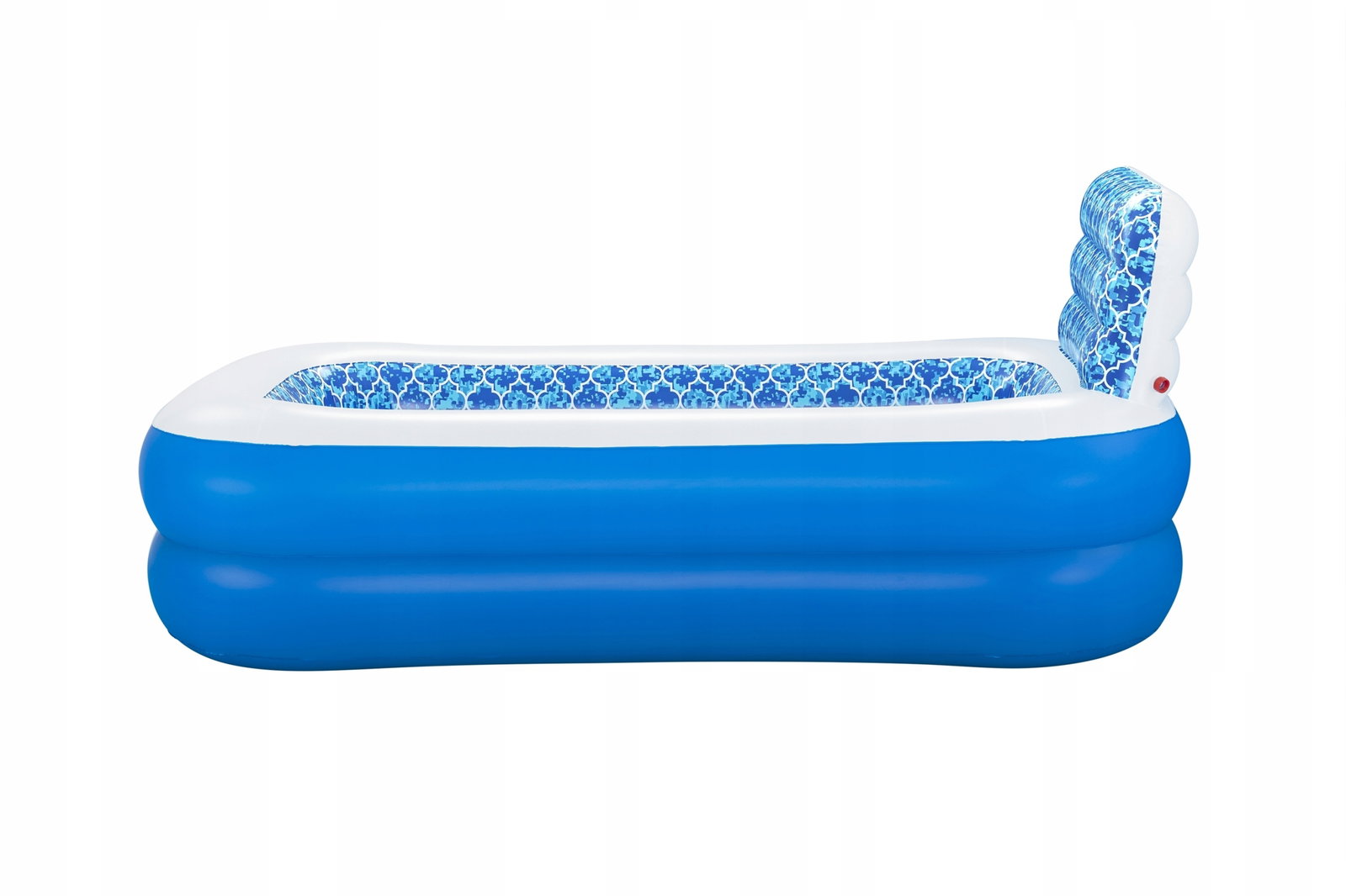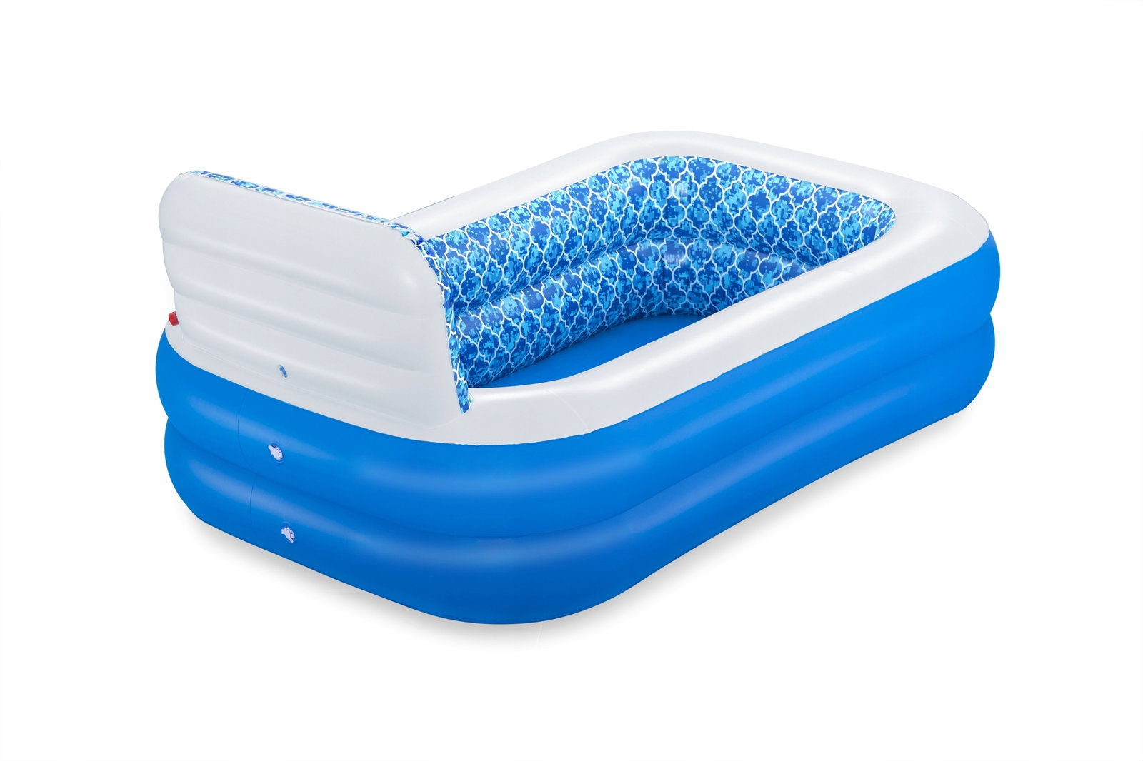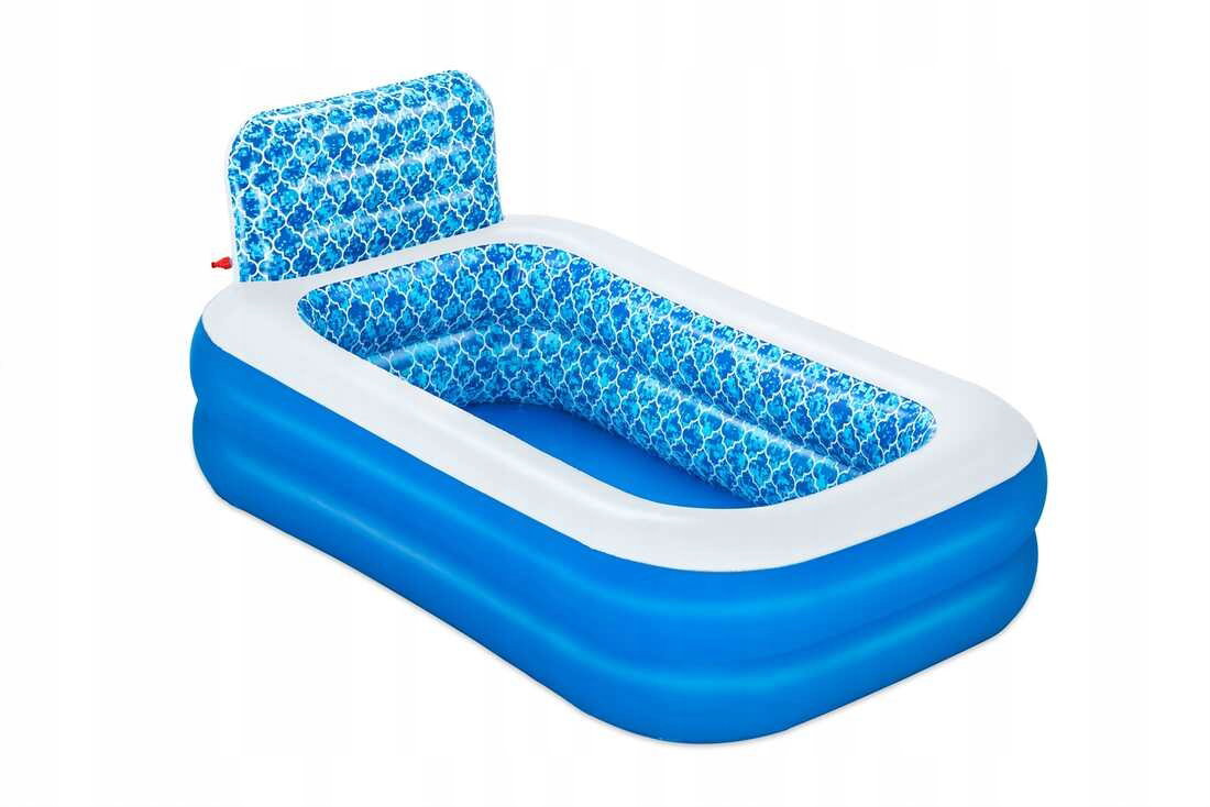 Dmuchany basen, który zagwarantuje doskonałe ochłodzenie dla najmłodszych podczas słonecznych, wakacyjnych dni w zaciszu własnego ogrodu bądź tarasu. Dużą jego atrakcją jest opcja zraszacza wodnego zamontowanego w wystającej ściance, do którego wystarczy podłączyć węża ogrodowego. Posiada grube i miękkie ścianki wykonane z winylu. Basen jest stabilny dzięki dwóm pierścieniom powietrznym, a dzięki swojej dużej pojemności, basen pomieści kilka osób jednocześnie.
