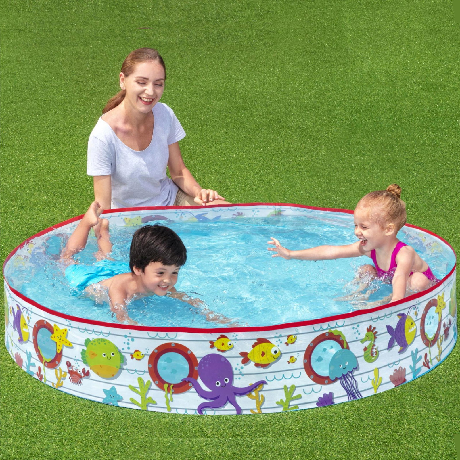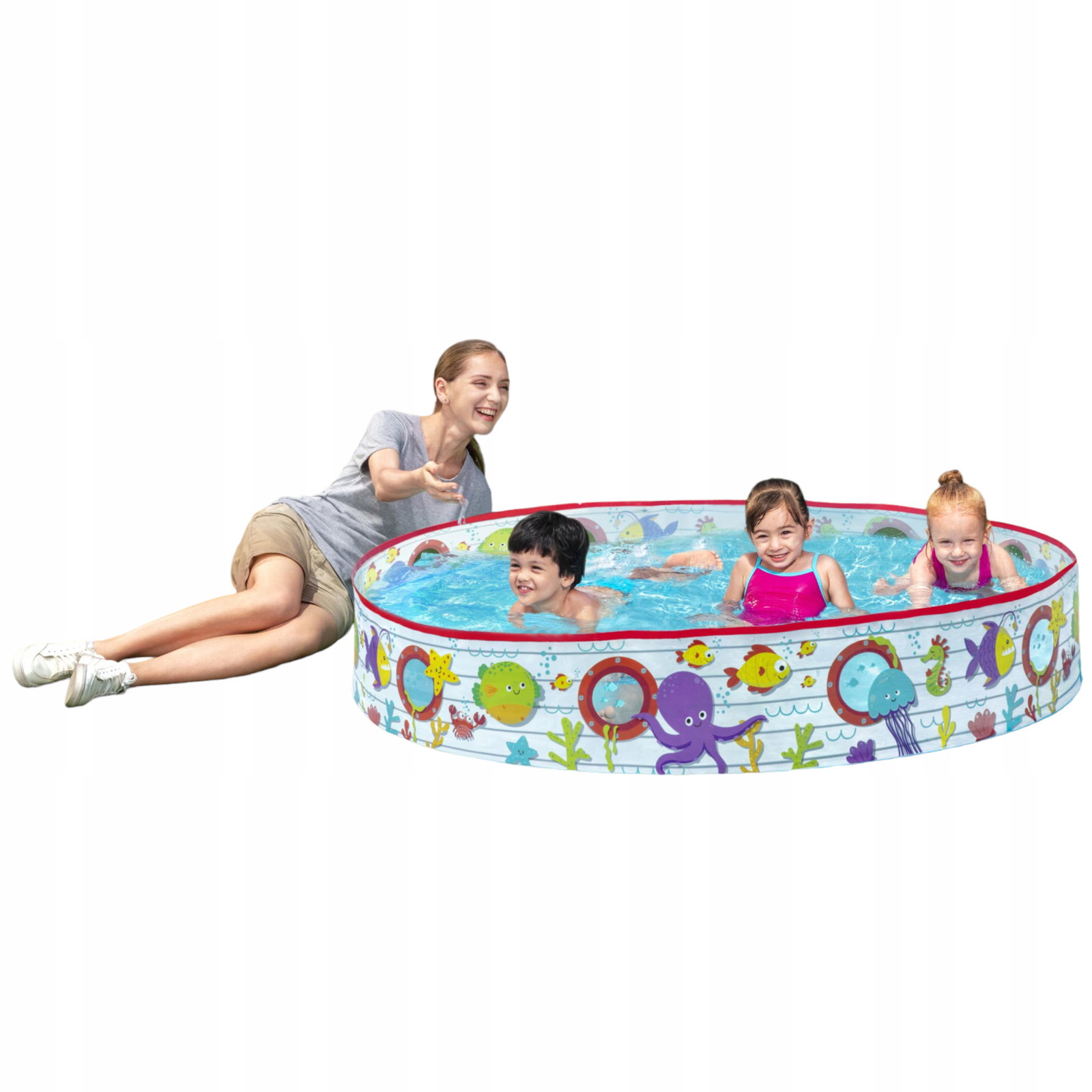 Basen rozporowy Bestway idealny na upalne dni. Wykonany z mocnego PCV, rozpręża się podczas napełniania wodą. W zestawie łatka naprawcza. Kolorowy wzór wodnych zwierzątek. Wymiary: 152 x 25 cm, pojemność: 435 l.