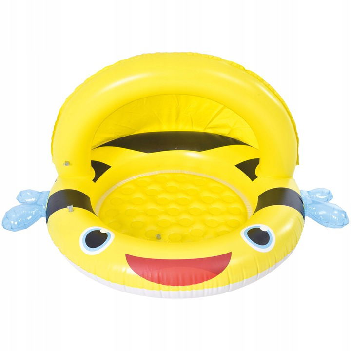 Basen posiada daszek chroniący dziecko przed wiatrem i promieniami słonecznymi