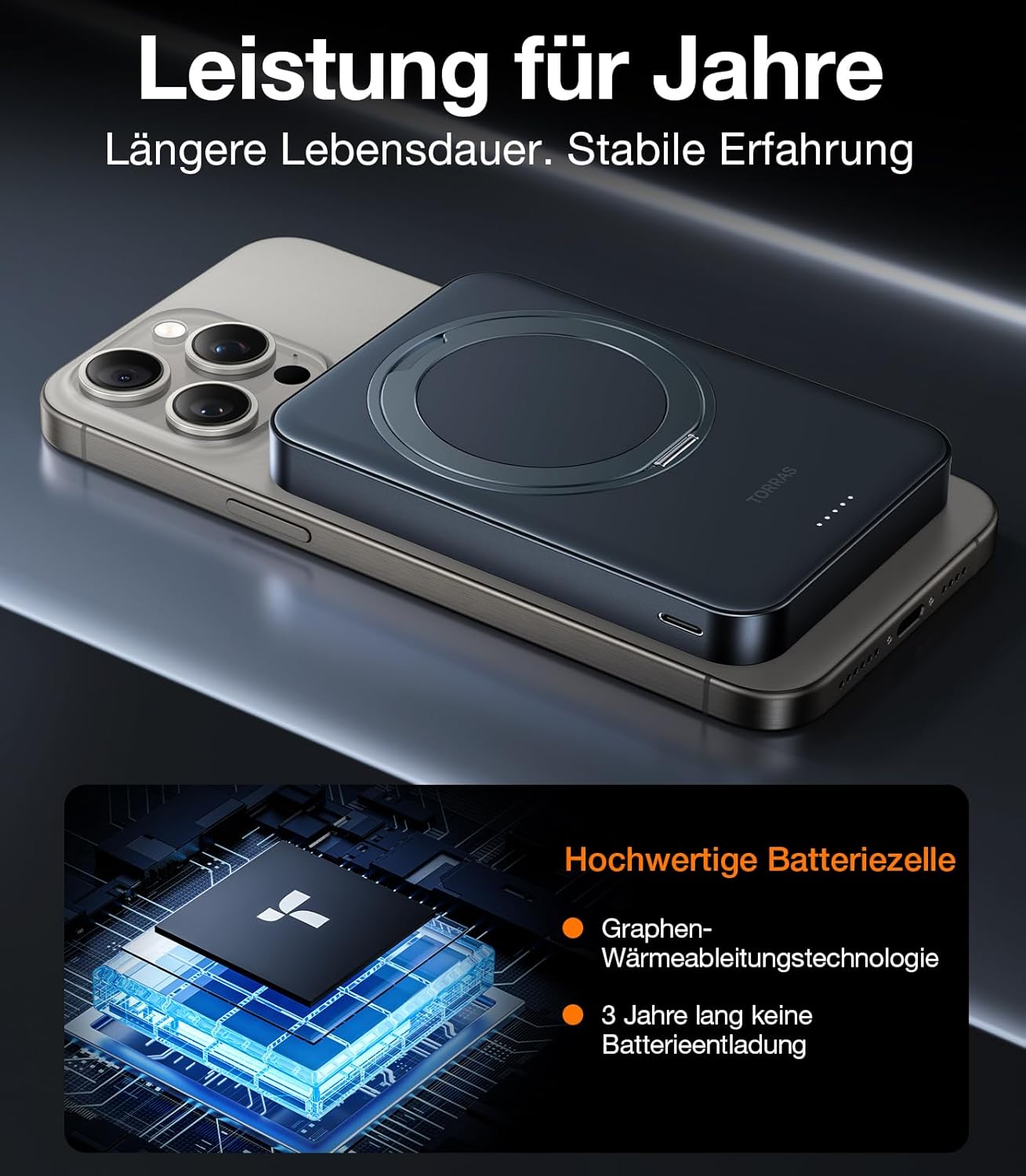 TORRAS Ostand to produkt typu "all-in-one" – eliminuje potrzebę noszenia osobnego stojaka i kabli, oferując przy tym najszybszą możliwą technologię ładowania bezprzewodowego dostępną obecnie dla smartfonów. 🏁