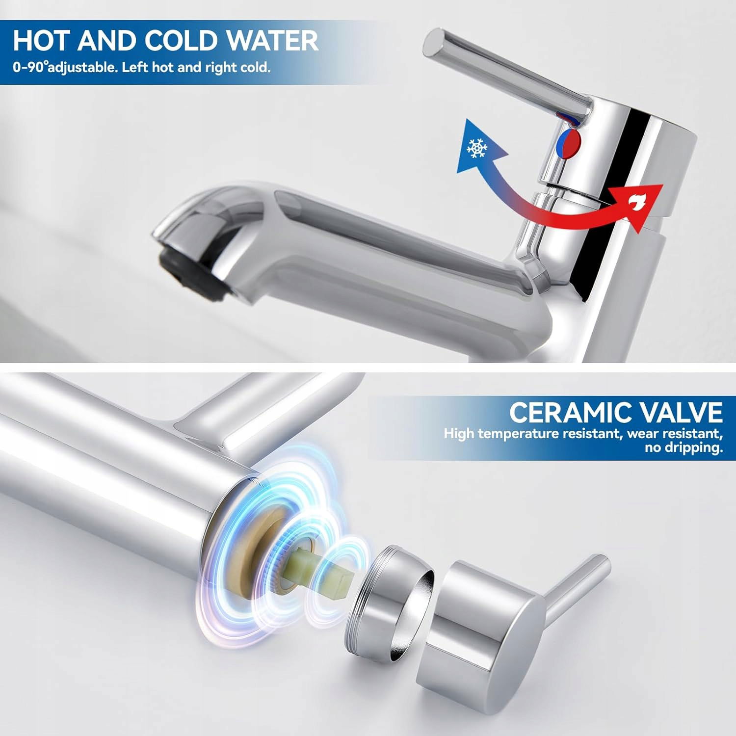 ✅ Dołączone części składowe: 1 x bateria łazienkowa, 2 x wąż ciepłej i zimnej wody, 1 x złączka instalacyjna, 1 x instrukcja obsługi, 1 x rękawiczki