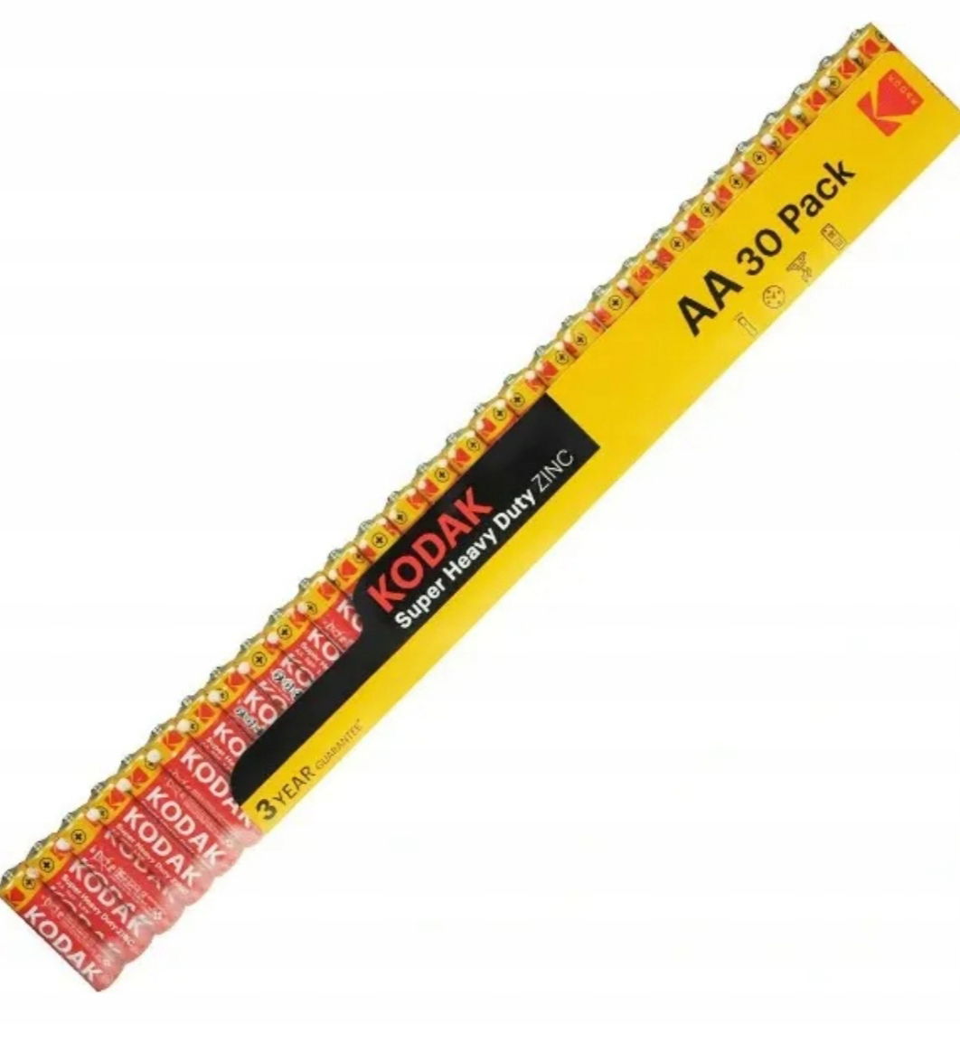 - Baterie KODAK Super Heavy Duty ZINC AA R6P 1.5V „duży paluszek” – 30 sztuk