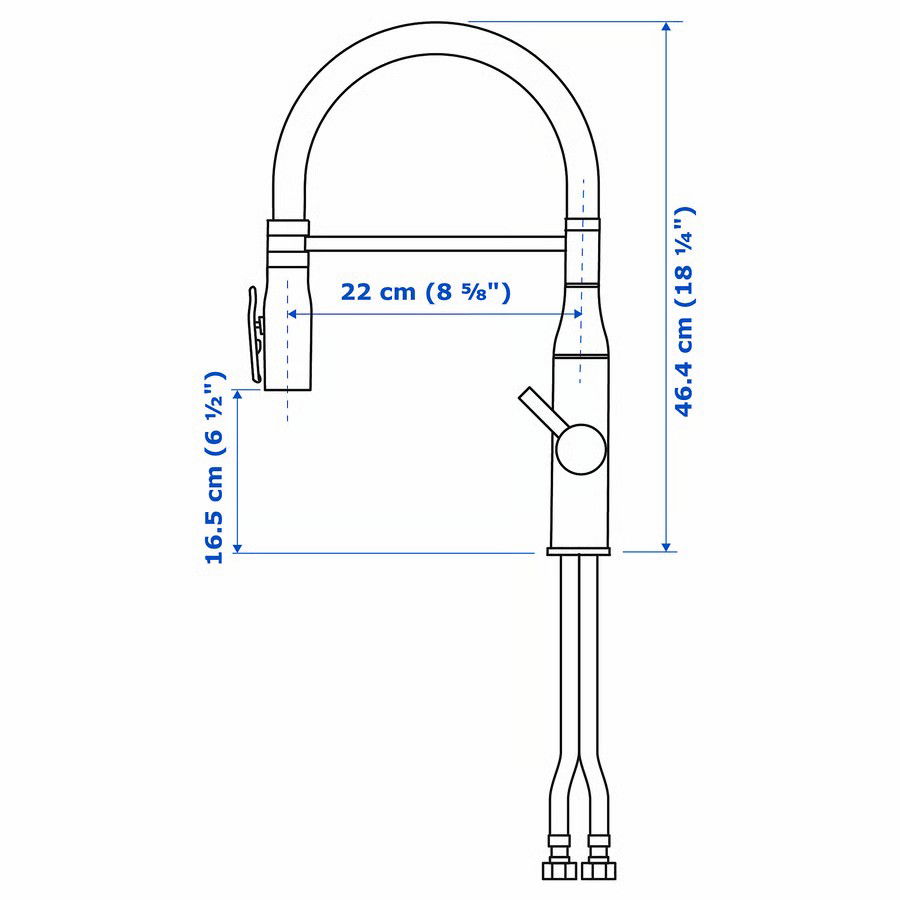 - Długość węży przyłączeniowych: 375 mm (14 3/4")
