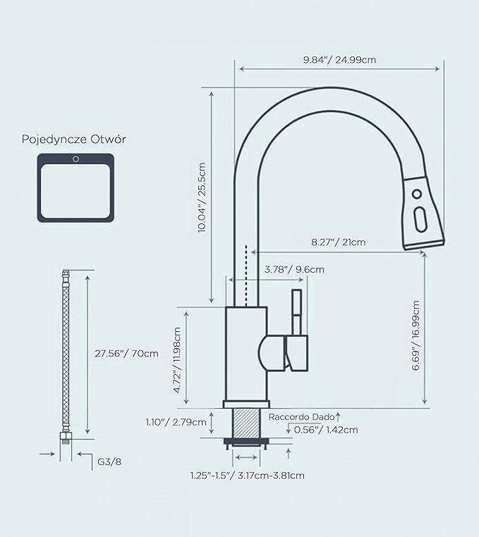 - Zasięg wylewki: 9,84 cala.