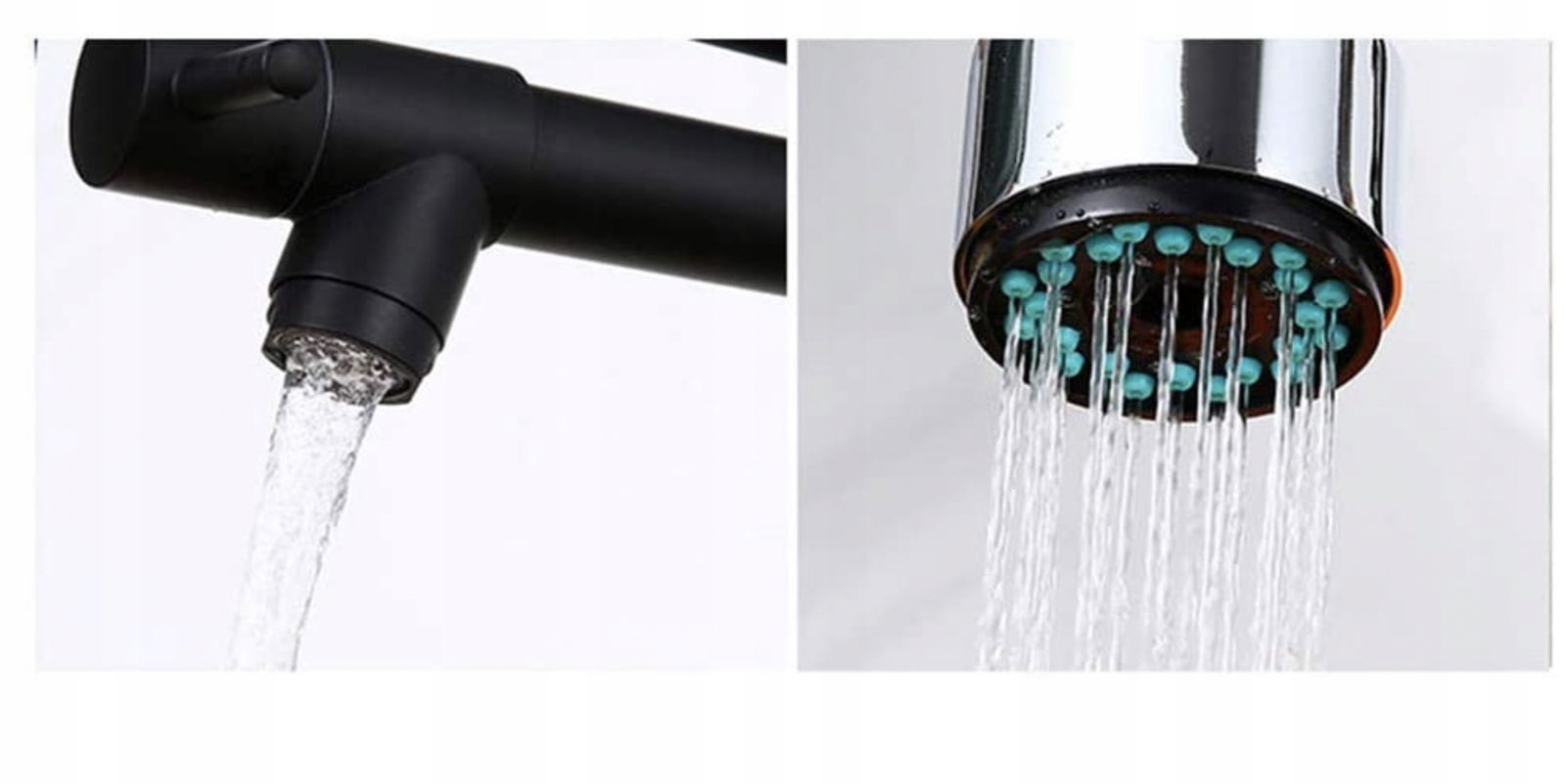 czarna matowa bateria kuchenna ma prosty i stylowy wygląd, dobrze pasuje do nowoczesnych kuchni. Wyciągana bateria kuchenna i stosunkowo wysoki odpływ wody są bardzo praktyczne. Jednouchwytowa bateria umywalkowa jest bardzo lekka i łatwa w użyciu.