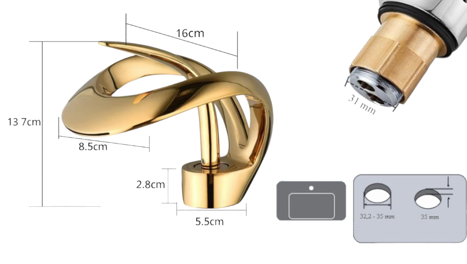 Wybór złotej baterii to decyzja, która natychmiast podnosi estetyczny standard łazienki, wprowadzając luksus i wyrafinowanie.Jest to obecnie trend w designie wnętrz ( Glamour , Modern , Classic ) Złoto doskonale kontrastuje z modnymi materiałami takimi jak marmur i matowa czerń