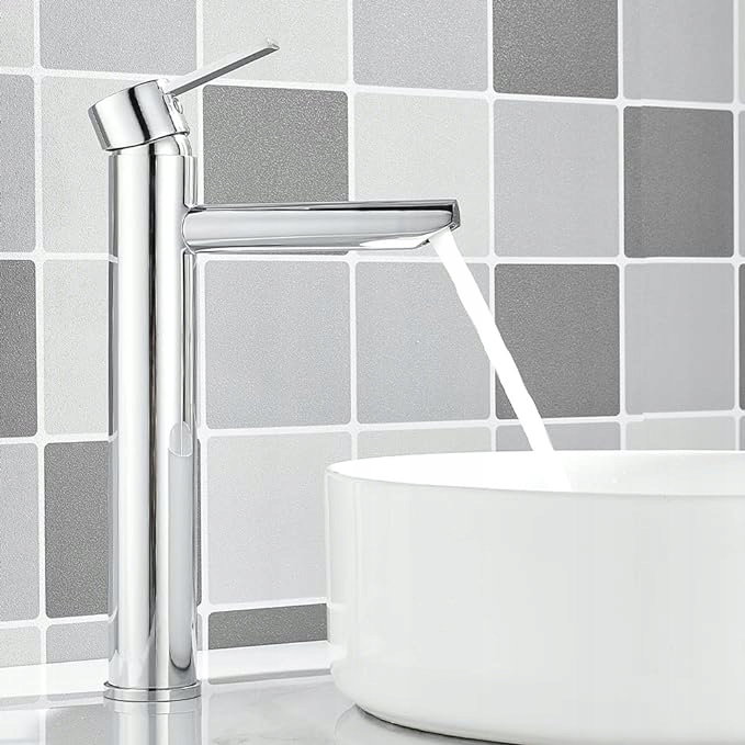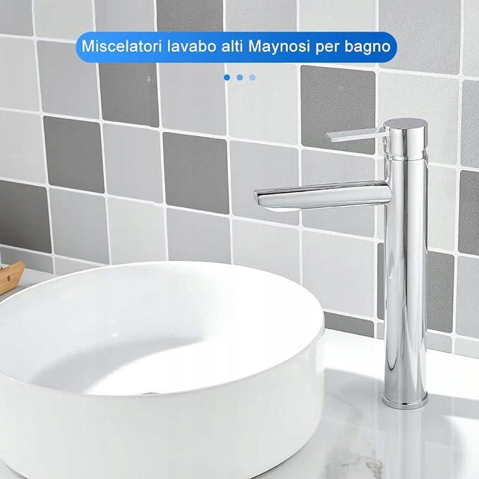 Bateria umywalkowa łazienkowa Maynosi Alto, bateria jednouchwytowa, baterie łazienkowe w nowoczesnym stylu z rurą PEX, bateria ciepła i zimna do umywalki nablatowej, stal nierdzewna, bezołowiowa (chrom)