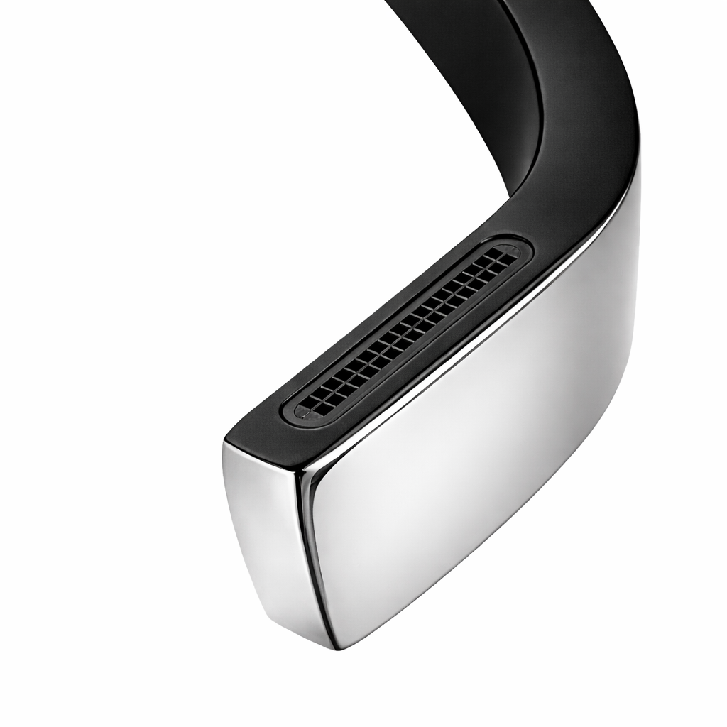 Kontrast połyskującego chromu i czerni tworzy nowoczesny design, który nadaje łazience wyrazisty charakter.