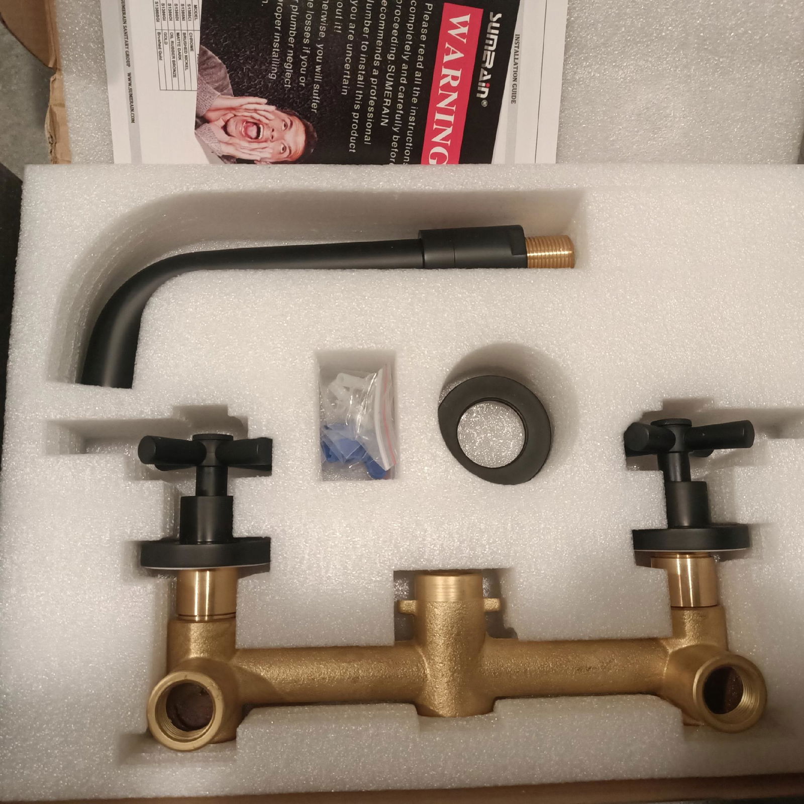 - Czarny kran do montażu na ścianie, przeznaczony do użytku ze standardowymi przyłączami hydraulicznymi 1/2" US (1/2 NPT), łatwy montaż w celu zaoszczędzenia kosztów roboczogodzin podczas instalacji.