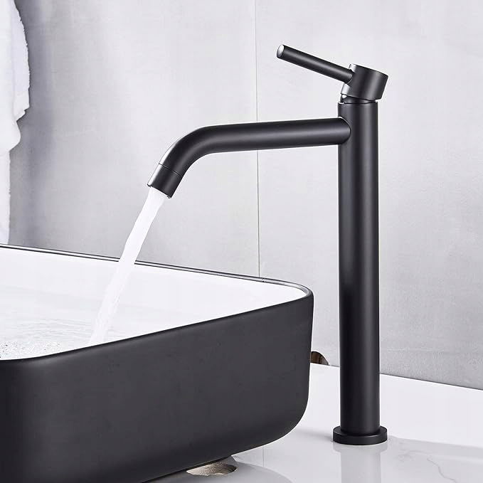 Suguword Bateria umywalkowa Łazienka Czarna bateria umywalkowa Bateria jednouchwytowa z wysoką wylewką Bateria z haftowanym uchwytem do łazienki wykonana z mosiądzu z wkładem ceramicznym