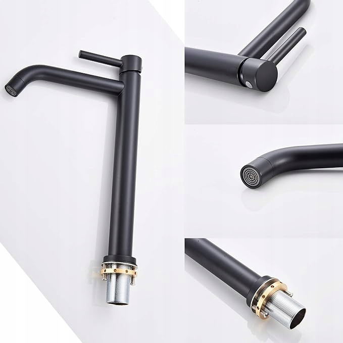 - Wykonany z litego mosiądzu i matowego czarnego wykończenia, odporny na matowienie i korozję w codziennym życiu; Uwaga: przyłącze węża wodnego: 3/8 cala.