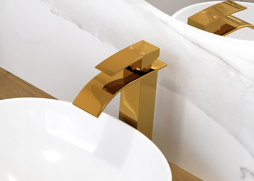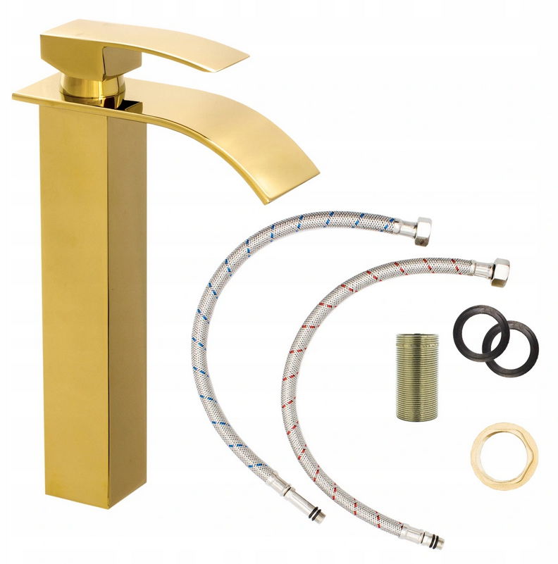 BATERIA UMYWALKOWA WODOSPAD KASKADA WYSOKA KRAN DO ŁAZIENKI ZŁOTA ELVA