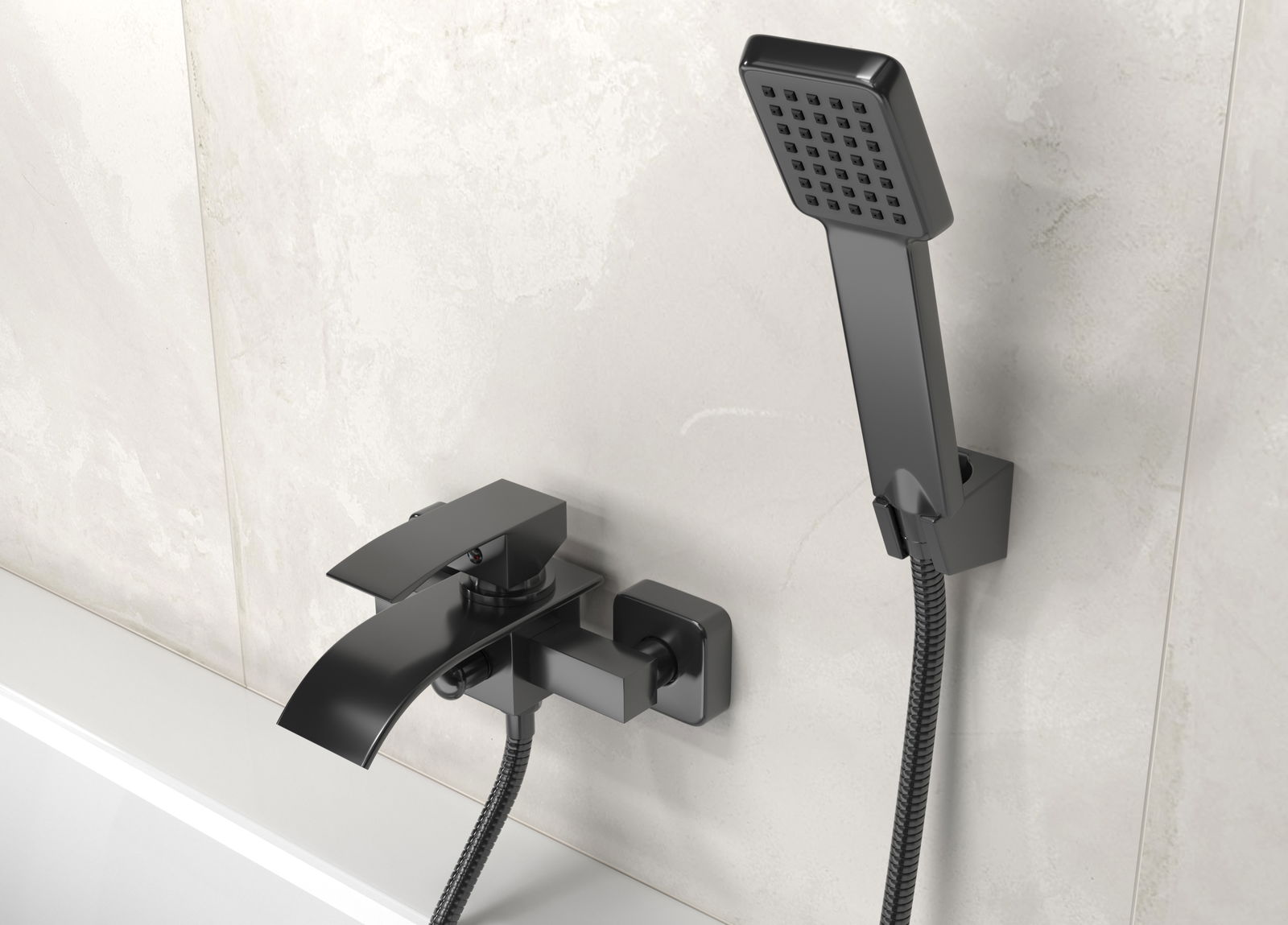 BATERIA WANNOWA WODOSPAD WYLEWKA KASKADA CZARNA KRAN DO ŁAZIENKI ELVA
