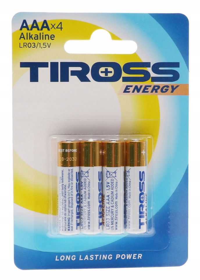 BATERIE ALKALICZNE Zestaw 4 Sztuki TIROSS Bateria x4 Paluszki LR3 R3 AAA
