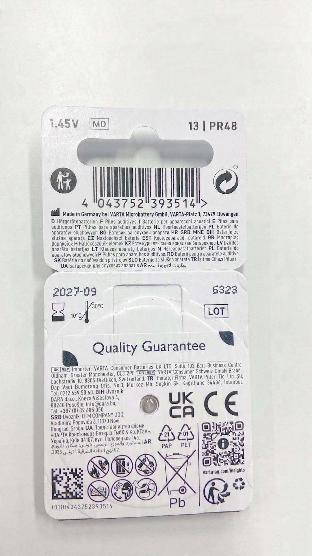 BATERIE VARTA TYP 13 PR48 1,45V DO APARATU SŁUCHOWEGO 6 SZTUK SUPER JAKOŚĆ