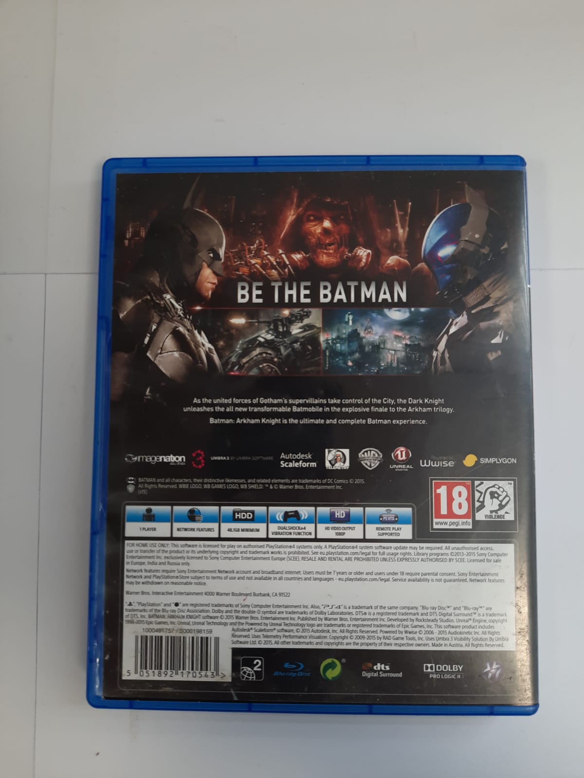 Przygotuj się na spektakularny finał wielokrotnie nagradzanej trylogii, wcielając się w Mrocznego Rycerza w Batman: Arkham Knight na platformę PlayStation 4! Gdy Strach na Wróble powraca, by zjednoczyć superzłoczyńców Gotham, musisz stawić czoła ostatecznemu zagrożeniu i ocalić miasto, które poprzysiągłeś chronić.