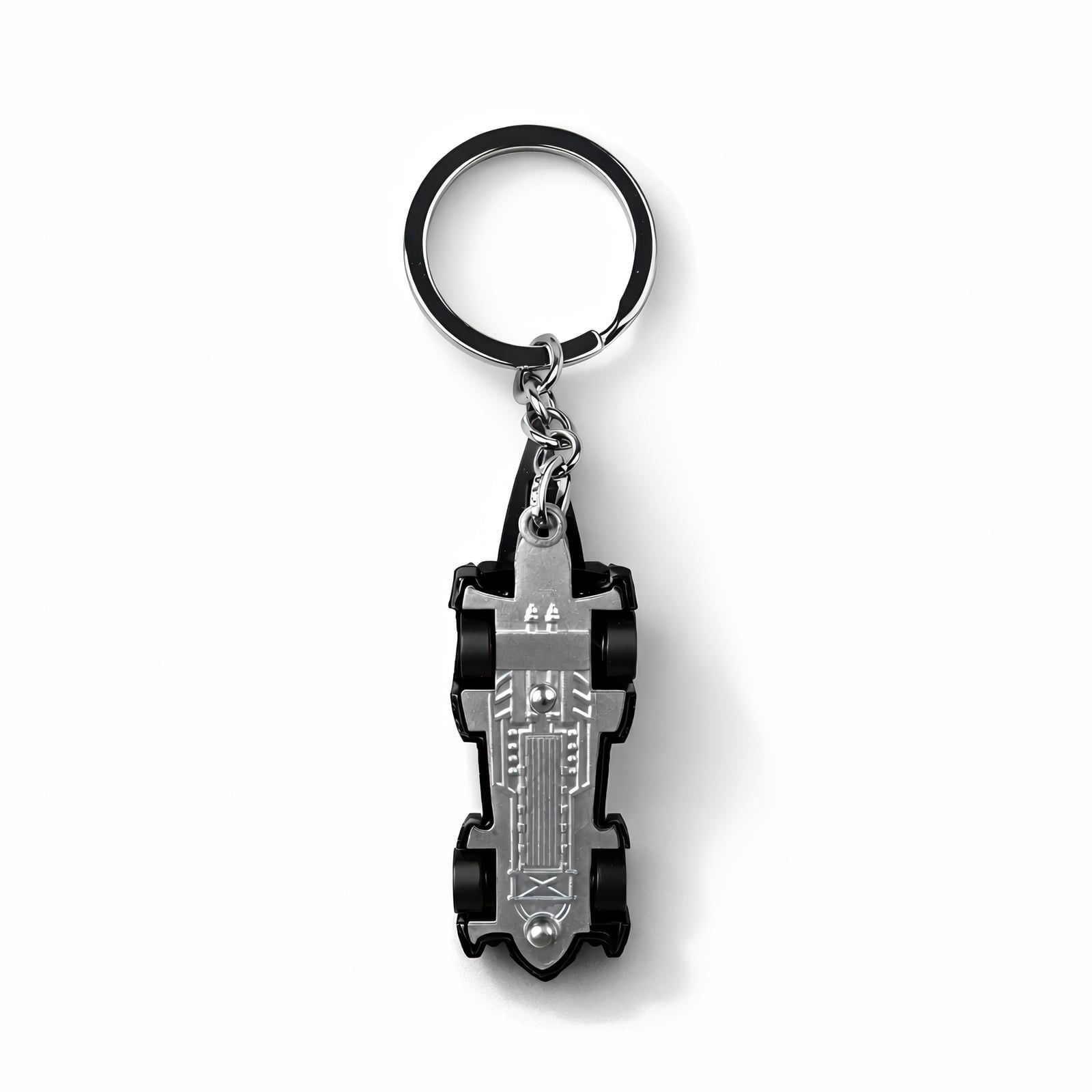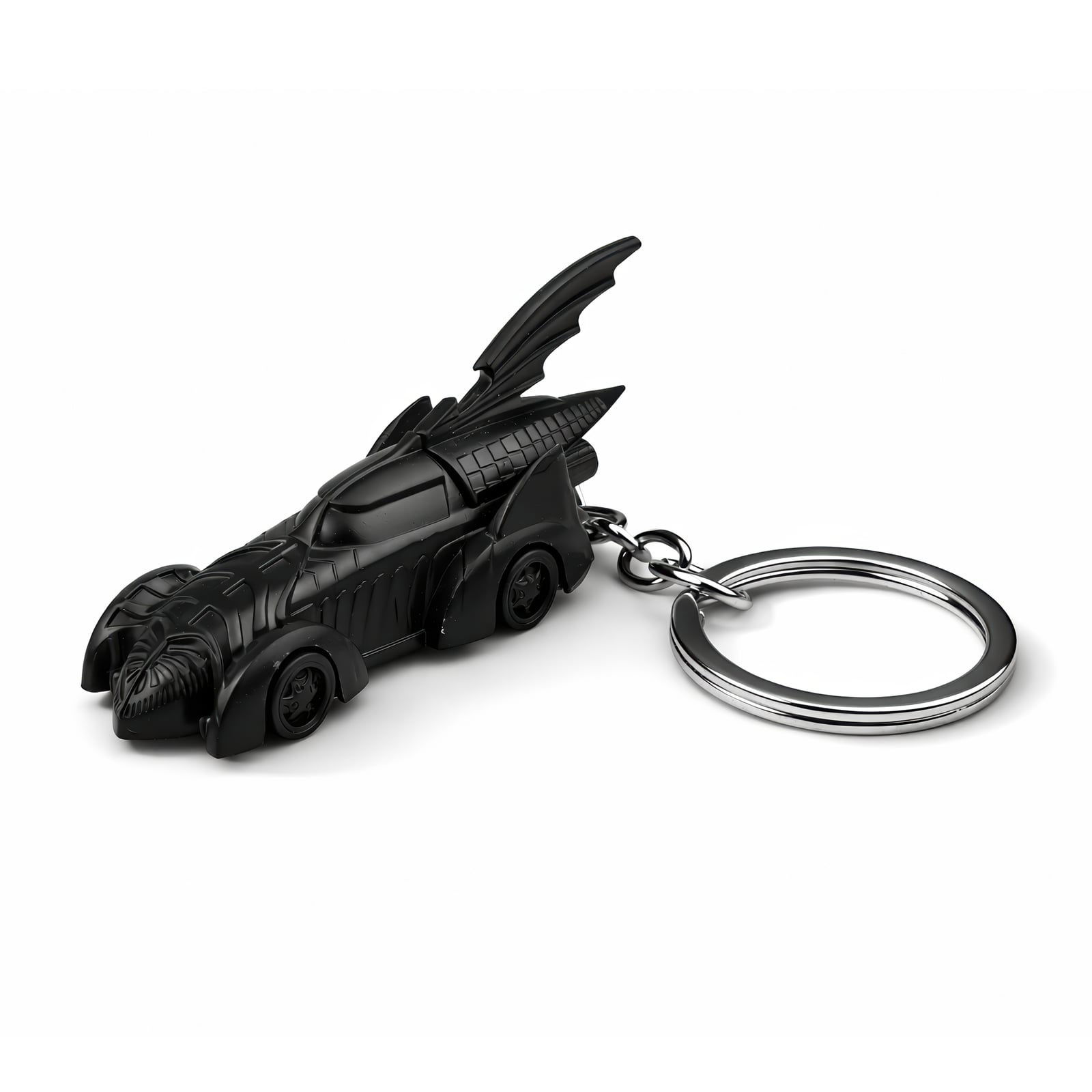 Wyłaniająca się z mglistych ulic Gotham, ta miniaturowa K‑samochód oddaje surowe zagrożenie Batmobilu z Arkham. Metalowy breloczek, o długości około ośmiu centymetrów, odtwarza kanciasty kształt samochodu w wykończeniu gunmetal, z błyszczącymi czarnymi panelami i subtelnym pomarańczowym akcentem w kształcie nietoperza, który błyszczy w świetle; maleńka przednia szyba i tylna płetwa są precyzyjnie wycięte, a wytrzymałe kółko pozwala na przymocowanie do kluczy lub torby. To idealna, kieszonkowa trofeum dla kolekcjonerów Batmana lub dyskretne akcesorium na noc cosplay.