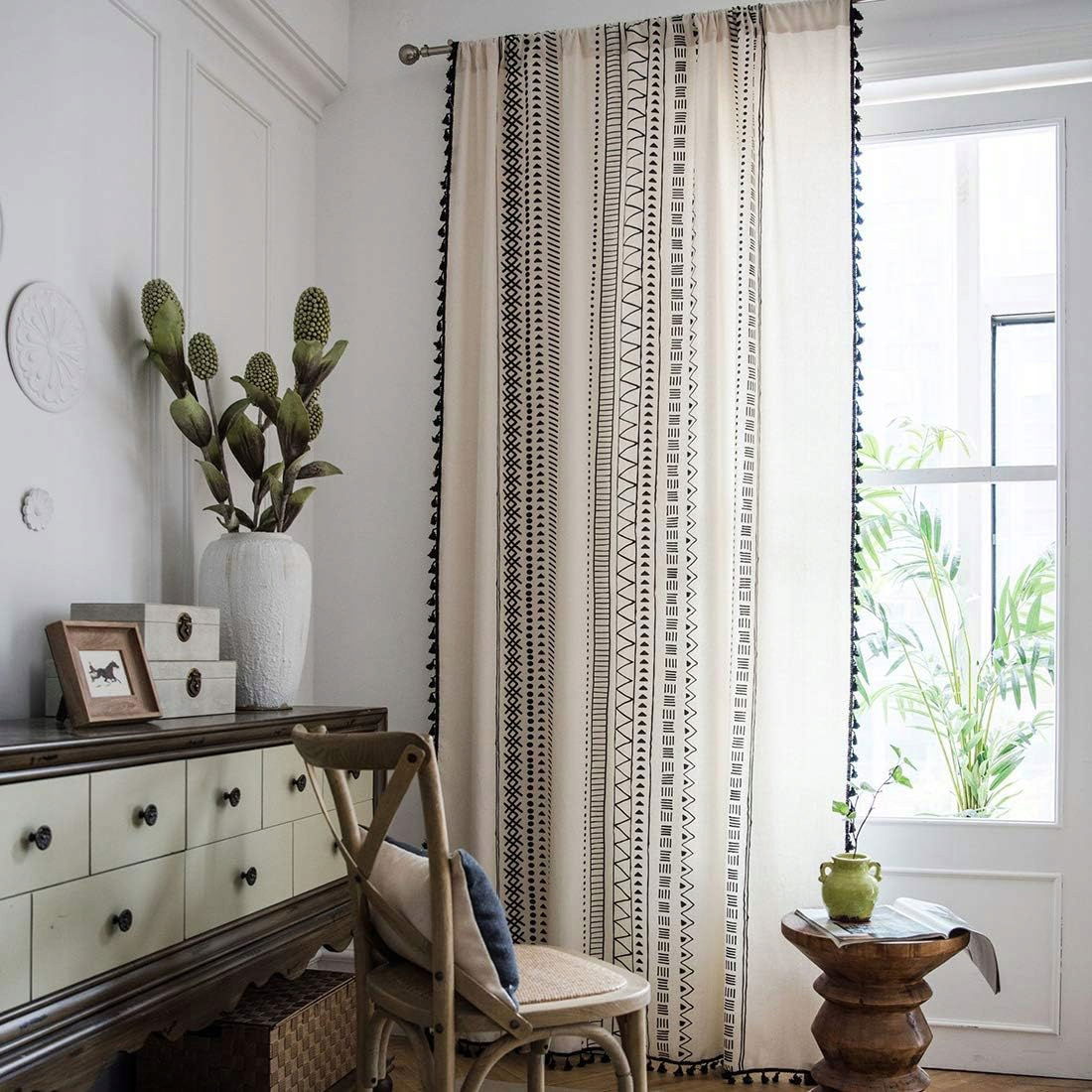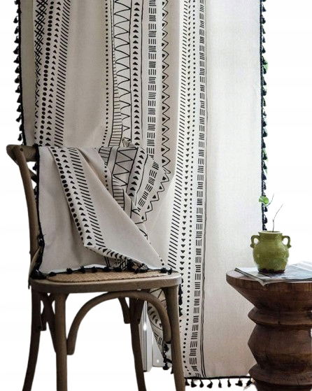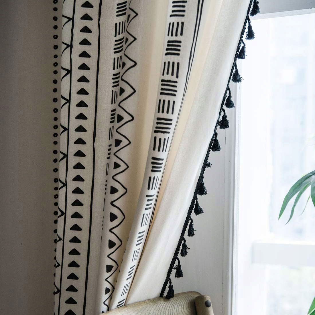 Okazje: Zasłony z frędzlami z nadrukiem mają delikatny design dla okien w stylu boho lub wiejskim, sypialni, salonu lub jadalni.