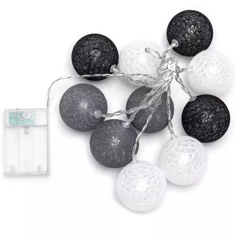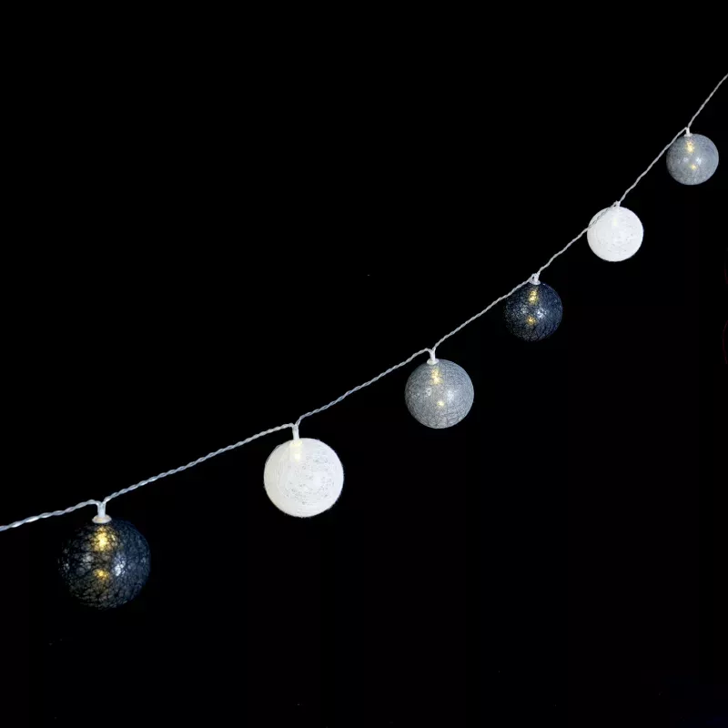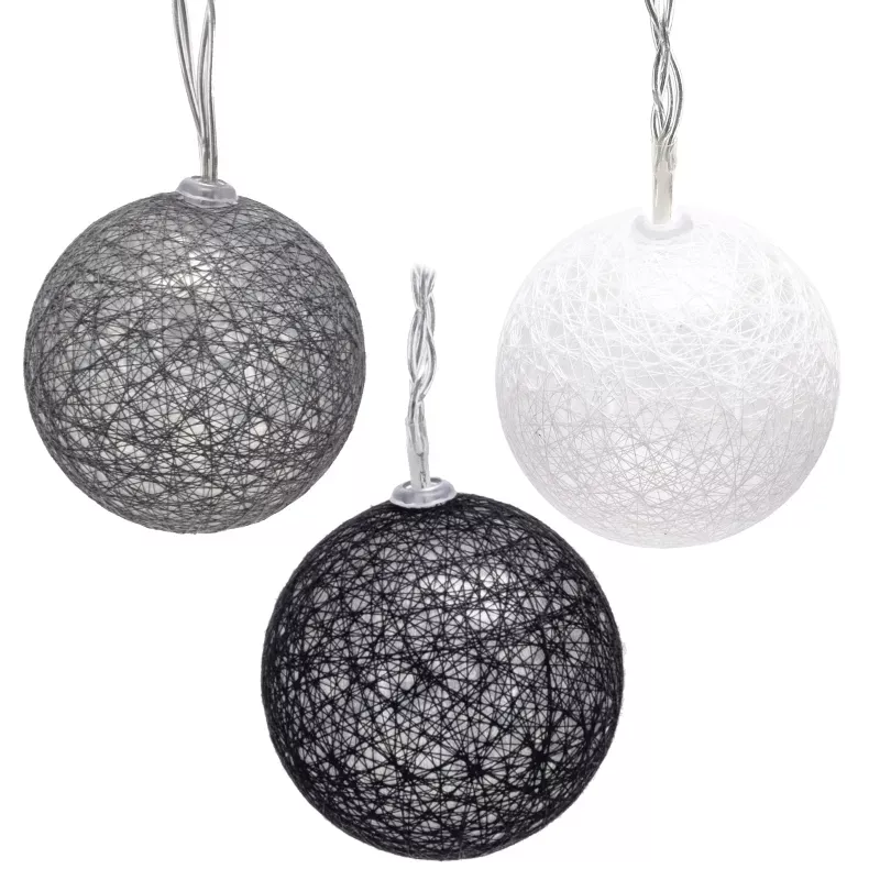 Bawełniane kule girlanda 10 szarych i białych kul 2 m dł. na baterie
