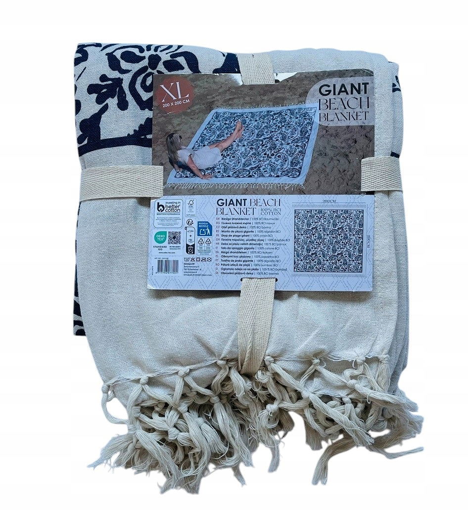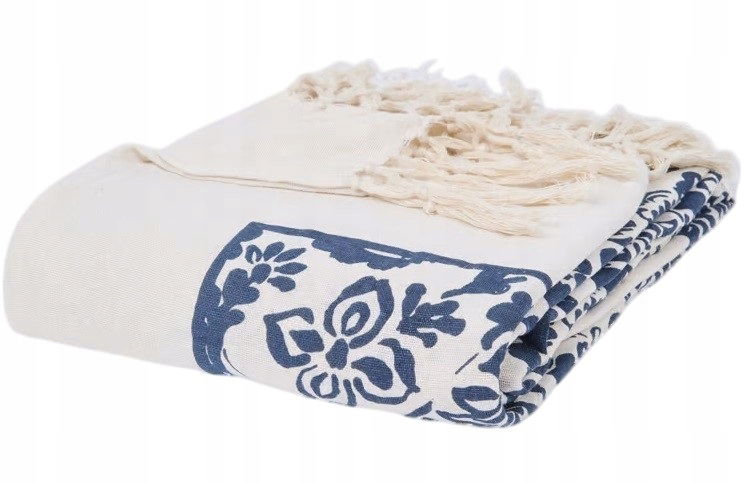 BAWEŁNIANY KOC NARZUTA RĘCZNIK PLAŻOWY wakacje piknik XL KWIATY 200x200 cm