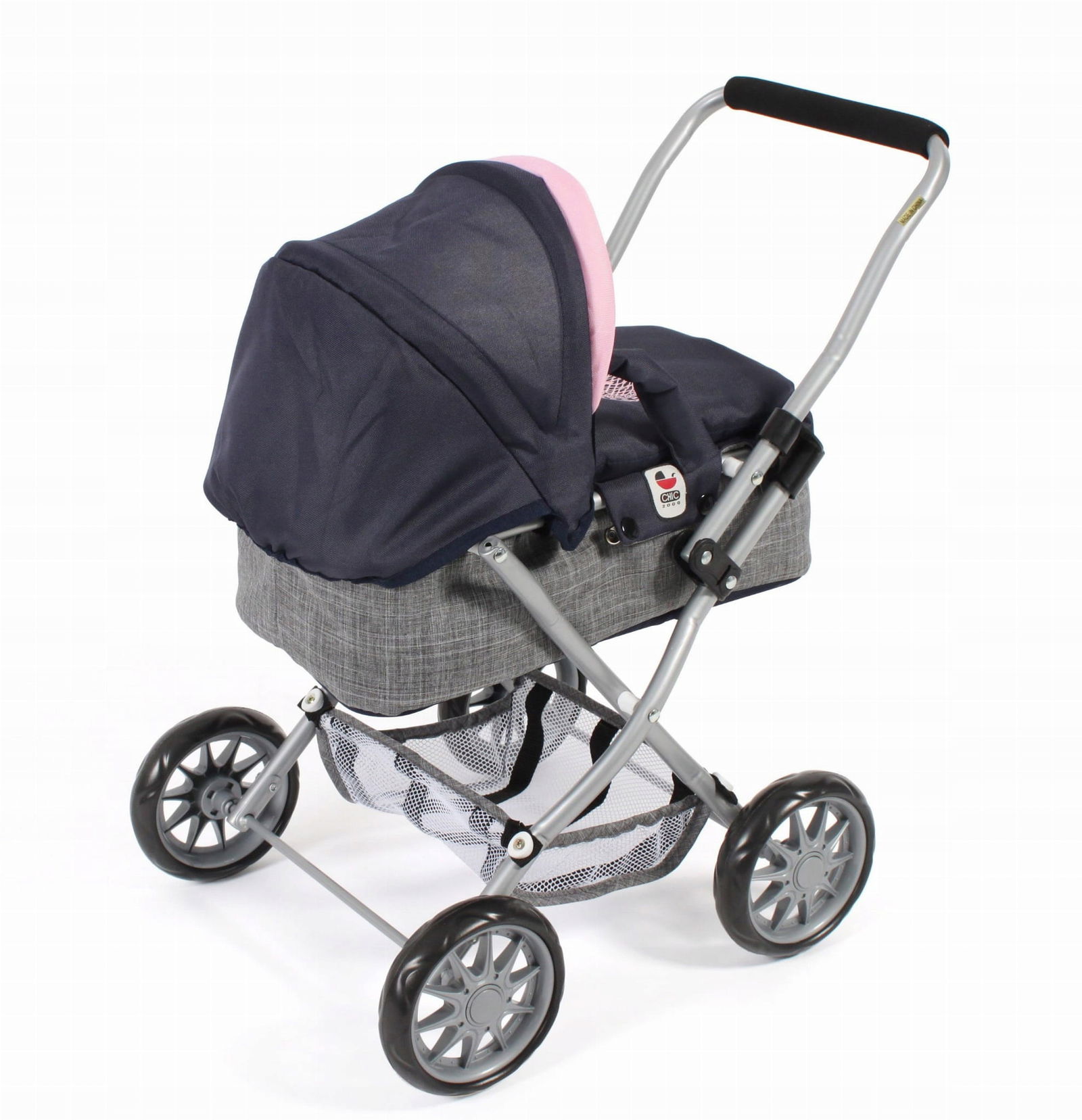 Bayer Chic Wózek głęboki dla lalek Smarty melange granatowo różowo szary z serduszkiem