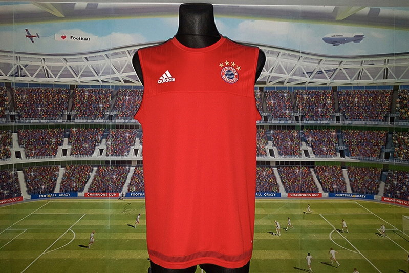 Co do stanu technicznego tej piłkarskiej koszulki treningowej drużyny występującej w niemieckiej Bundeslidze – FC Bayern Monachium (Fußball-Club Bayern München e.V.), wyprodukowanej przez koncern Adidas /adizero/, to jest on… bardzo dobry.