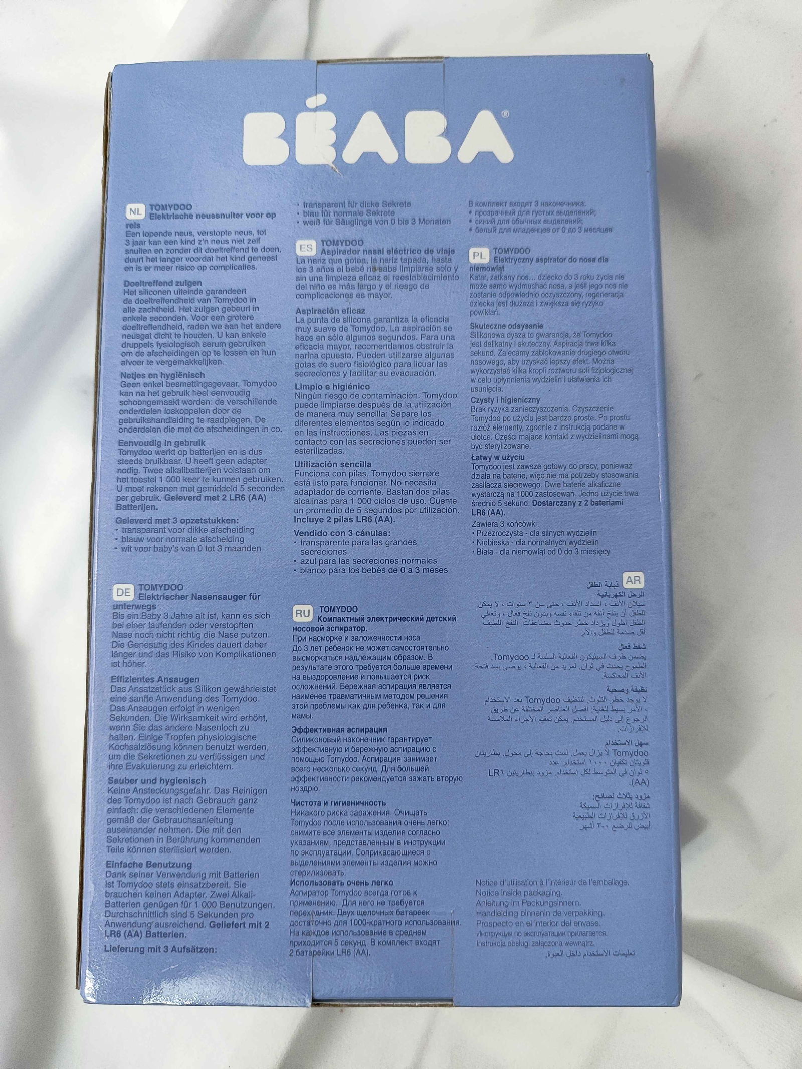 - końcówki: 3 sztuki (z wąską końcówką dla niemowląt od 0 do 3 miesiąca życia, szersza dla dzieci powyżej 3 miesiąca życia oraz specjalna końcówka do stosowania przy gęstej wydzielinie).