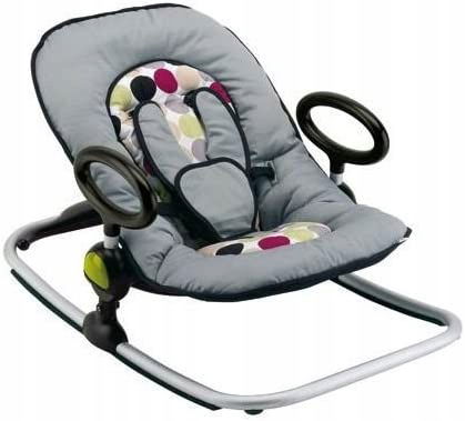 Posiada 4- stopniową regulację wysokości, 3 - stopniową regulację oparcia oraz przydatną funkcję bujania.