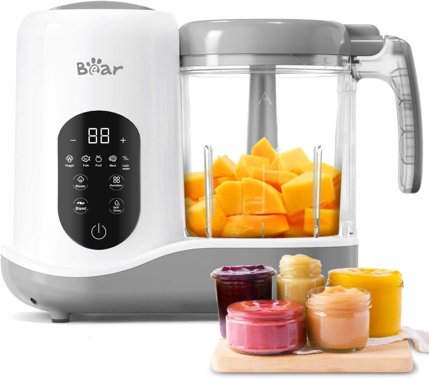 Bear urządzenie do przygotowywania posiłków dla niemowląt, parowar, automatyczne gotowanie i rozdrabnianie, z funkcją samooczyszczania, biały