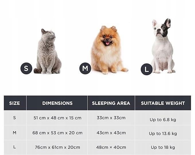 - Praktyczne wymiary: 51x48x15 cm idealnie nadaje się dla małych psów i kotów w każdym wieku.