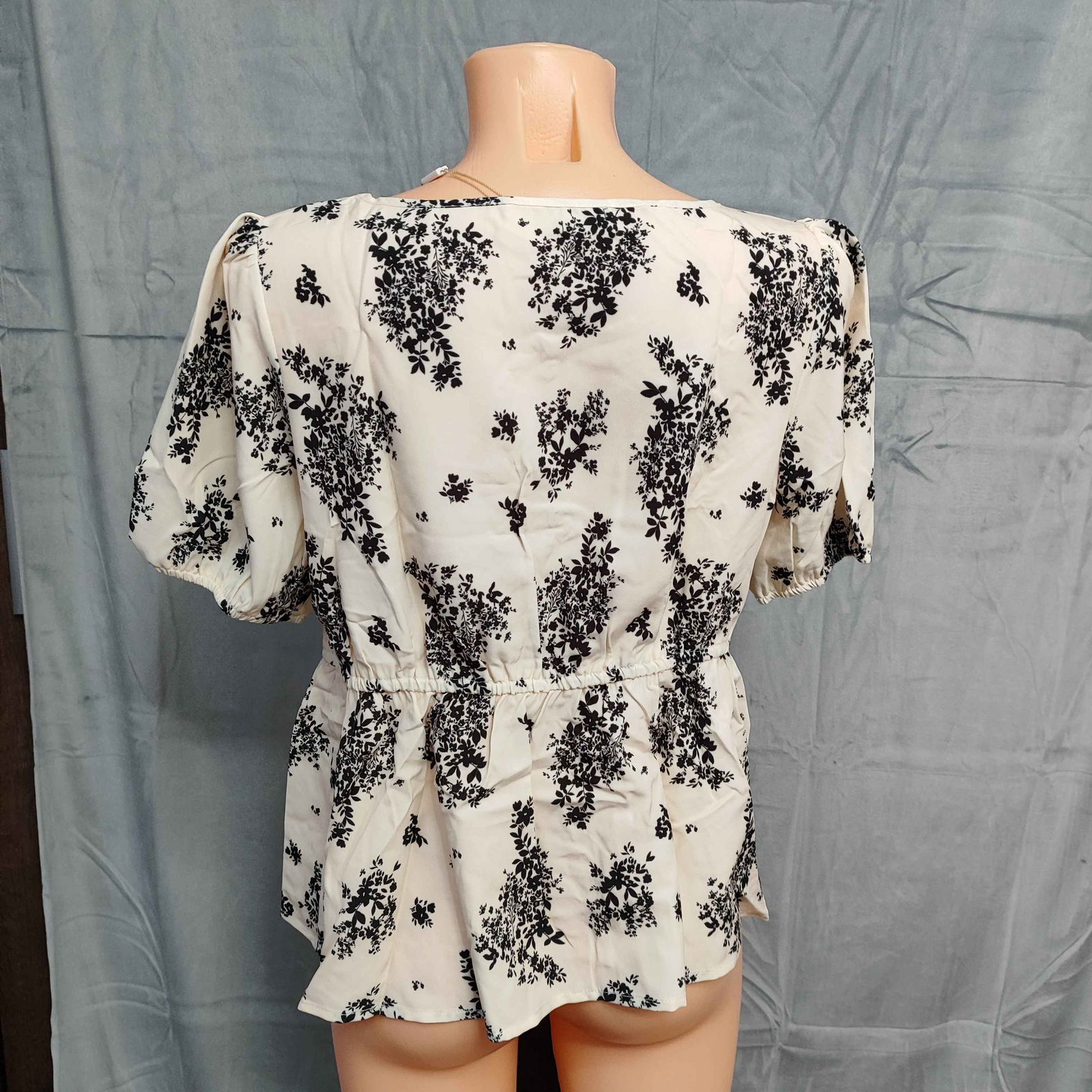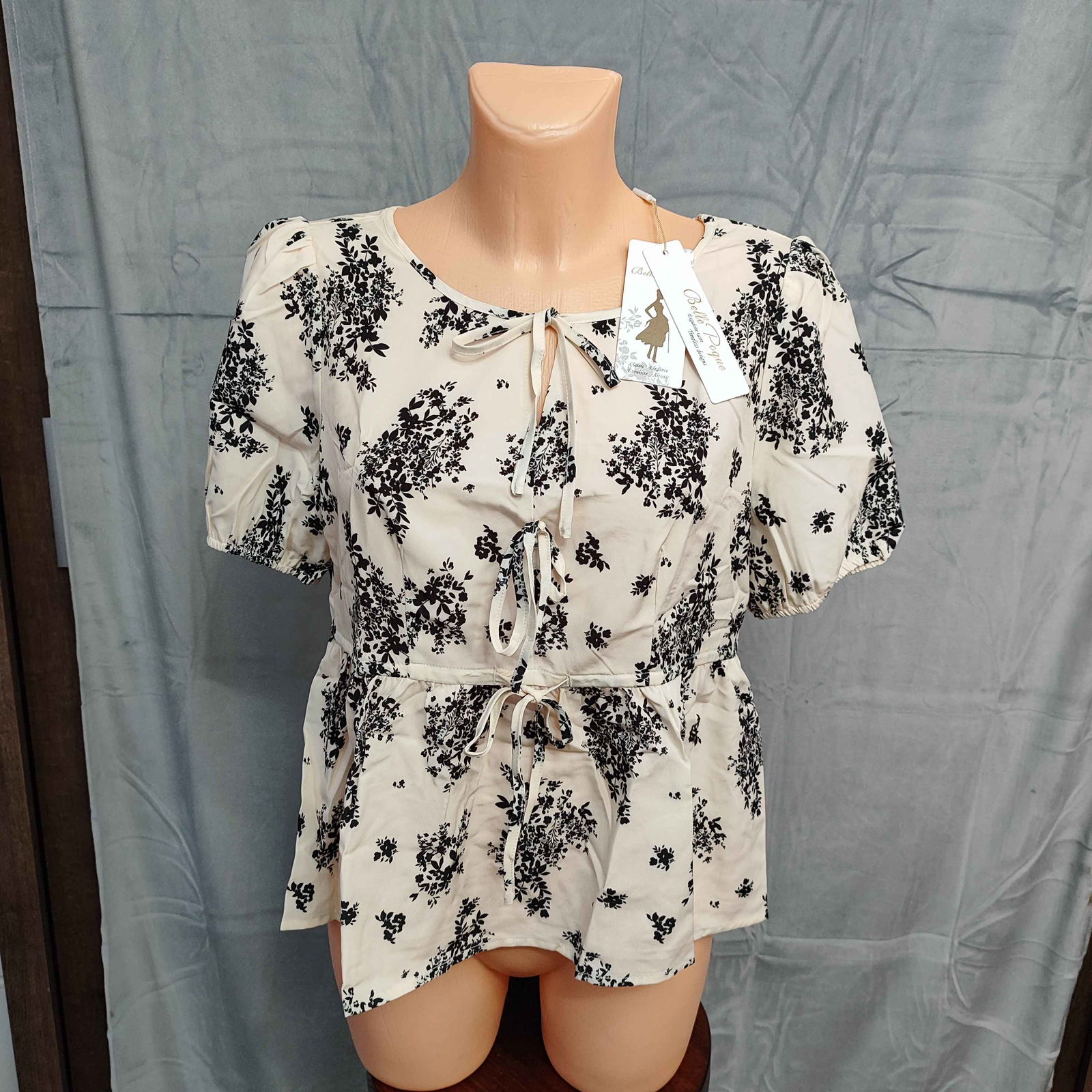 Wiązanie z przodu dodaje bluzce kobiecego i delikatnego uroku, z kolei bufiaste rękawy dodają trochę romantyzmu. Dzięki wiązaniu w pasie bluzkę można bardzo łatwo dopasować pod swoje gusta.