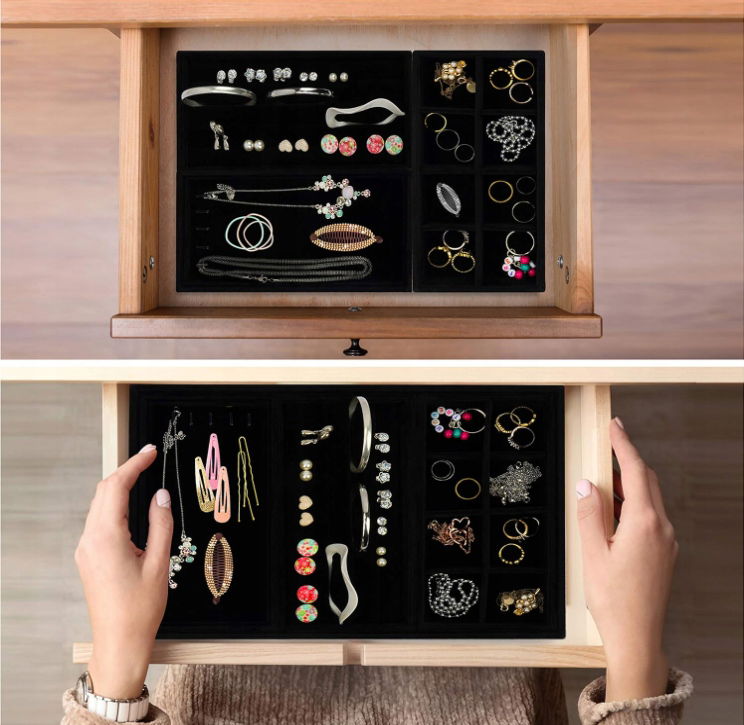 - ✴️ Ochrona biżuterii-Miękka aksamitna wykładzina chroni przed kurzem, wilgocią, zarysowaniami, matowieniem i splątaniem; każda biżuteria ma swoje miejsce.