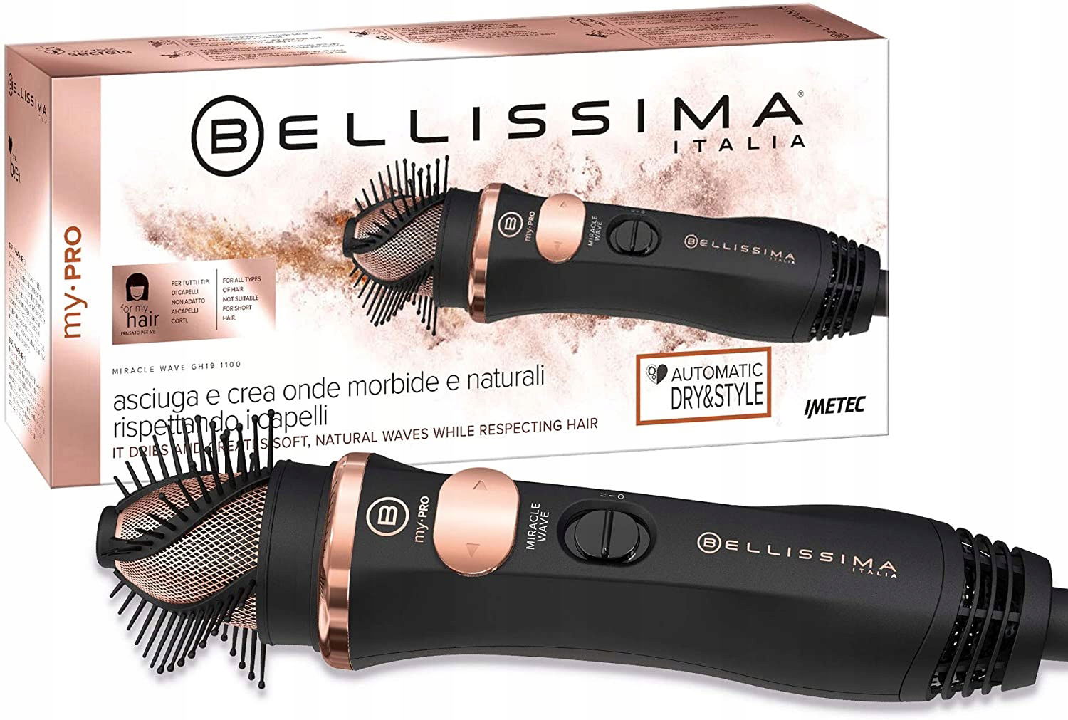 2 kombinacje powietrza i temperatury do indywidualnego suszenia i stylizacji. Skręcany przewód, aby korzystanie z lokówki było jeszcze łatwiejsze