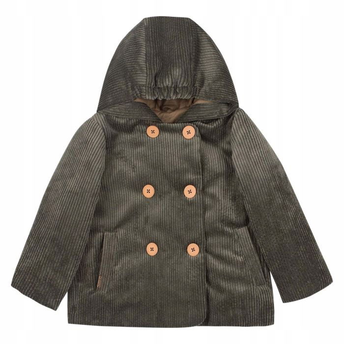 Kurtka jesienno-sezonowa dla dziewczynki, wierzch – sztruks, podszewka bawełniana. Cały model obszyty jest ociepleniem Comforlight. Długie rękawy, głęboki kaptur, zapięcie na guziki, wszyte kieszenie. Prosty krój, średniej długości.