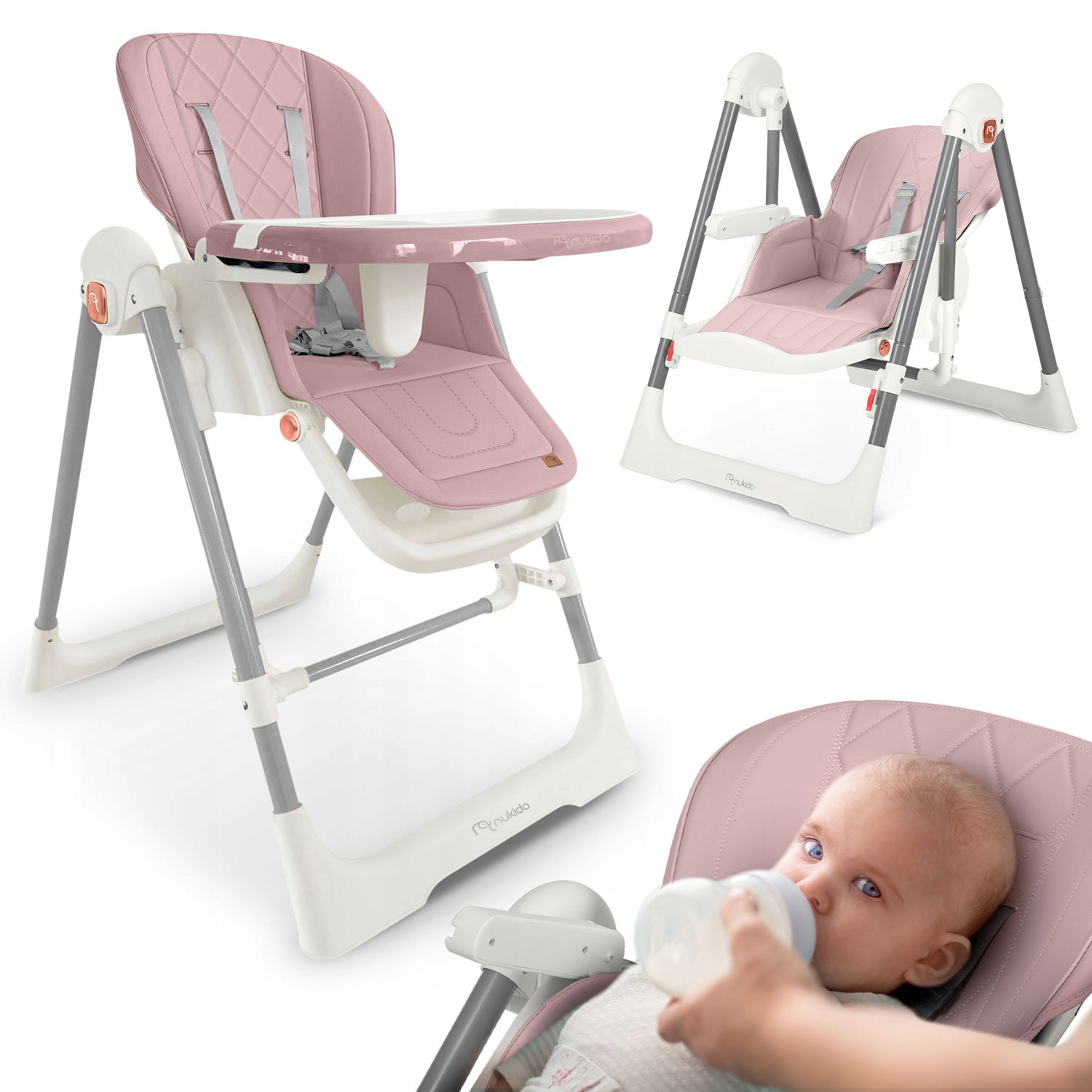 BEMI KRZESEŁKO DO KARMIENIA LEŻACZEK BUJACZEK 3w1 W KOLORZE RÓŻOWYM
