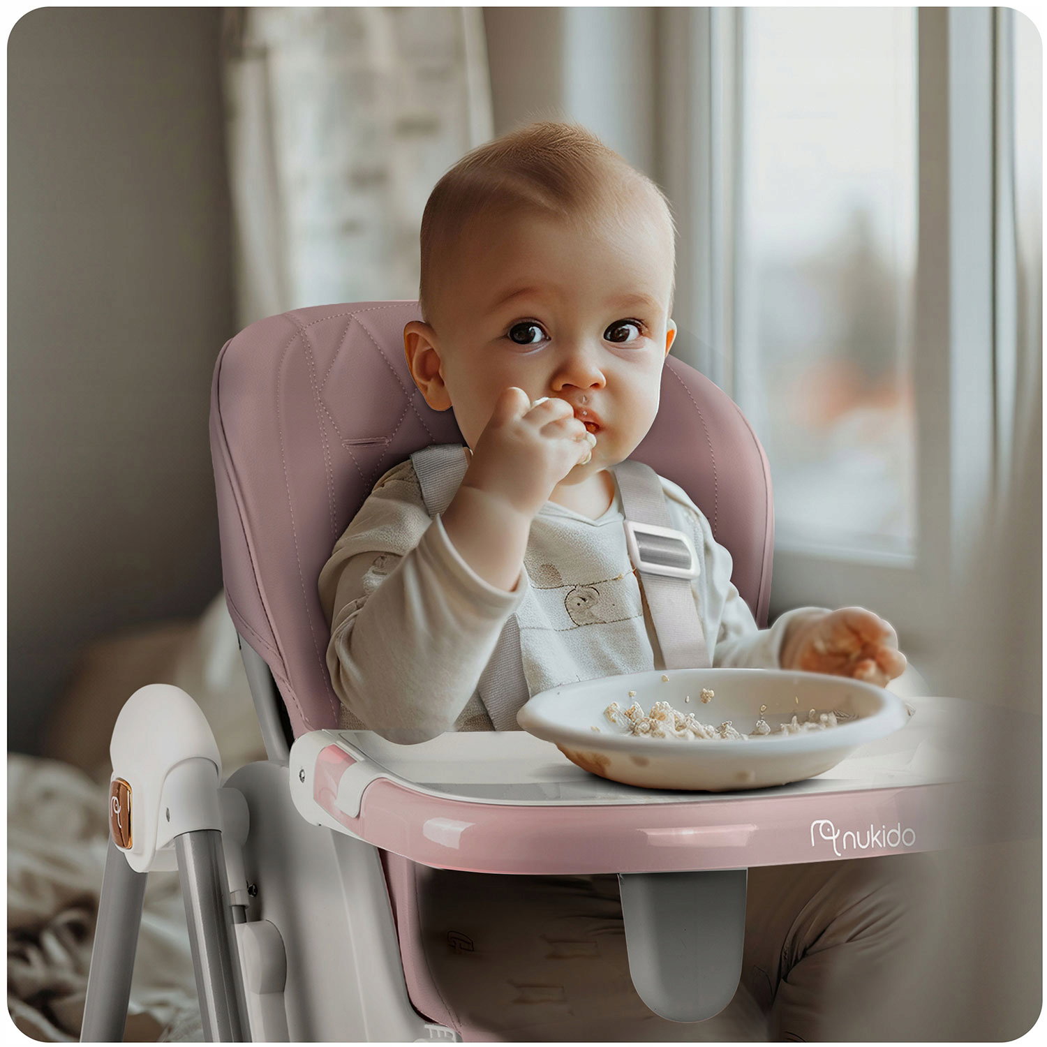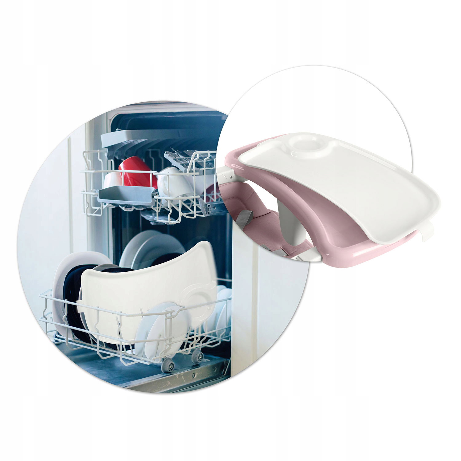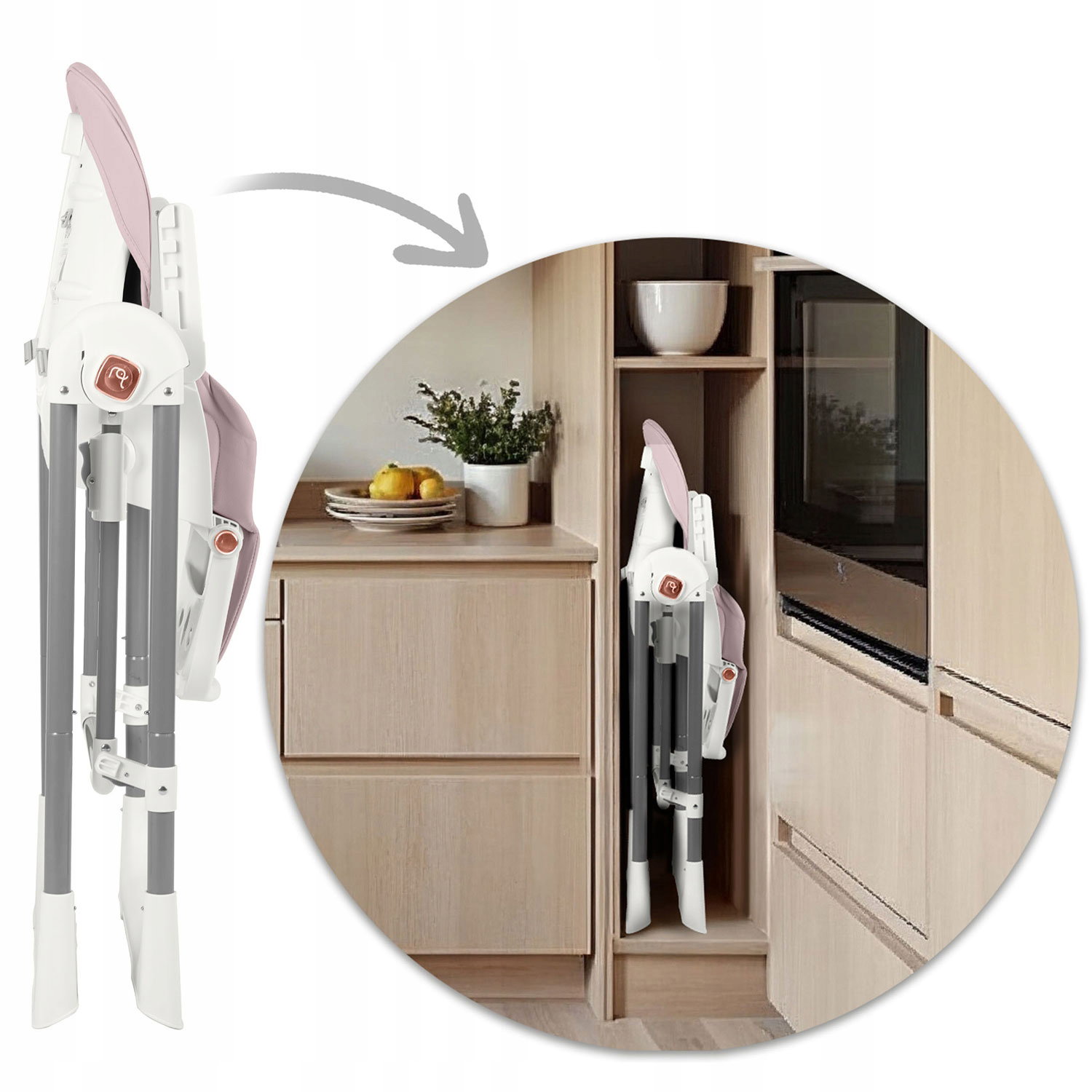 Dodatkowe informacje: Antypoślizgowe nóżki, Funkcja: oddzielny stoliczek+krzesełko, Koła, Pasy bezpieczeństwa, Regulacja oparcia, Regulacja wysokości, Regulowany podnóżek, Wkładka dla niemowląt, Zdejmowane pokrycie, Zdejmowany blat