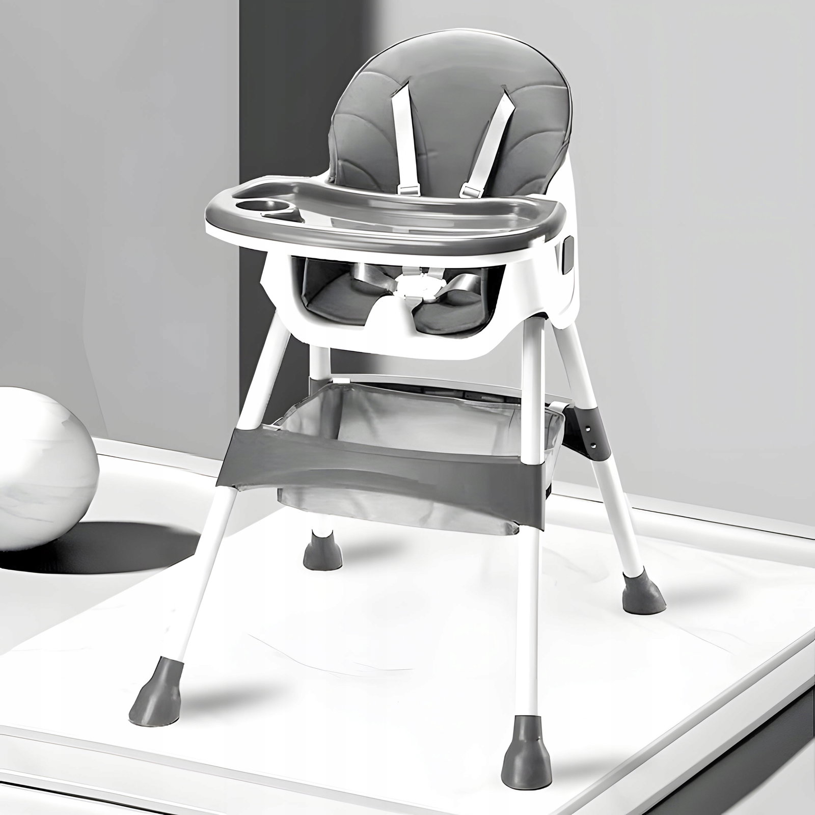 BEMI KRZESEŁKO DO KARMIENIA TACKA PASY BEZP. SKŁADANE KOSZ SZARE