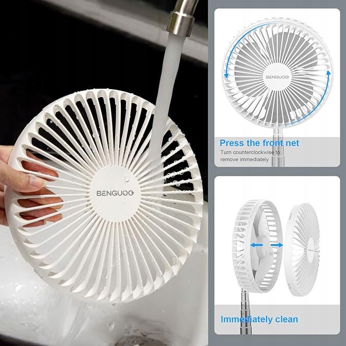 - Bezprzewodowa praca i wbudowany akumulator 10000 mAh: Wentylator stojący / biurkowy BENGUOO działa na dużym akumulatorze 10000 mAh, 6,5 godziny pełnego naładowania, zapewnia bezprzewodową pracę 5,5-20 godzin. Ma 4-biegową, czas pracy zależy od różnych prędkości.